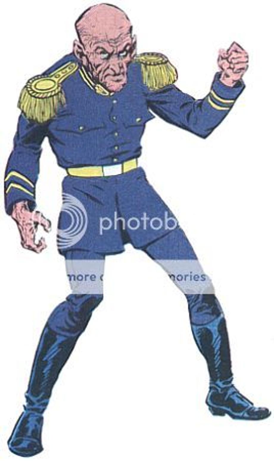 "Captain Zahl is a former German U-boat captain who was ruthless and effective, and achieved the highest kill rate of any other commander in the German fleet. After the Nazis were defeated by the allies in WWII, Captain Zahl worked fled the manhunts that ensued until he directed his U-boat into the Bermuda Triangle, which warped him into the present. He at first set out in a campaign of world conquest, until a run in with the Doom Patrol forced him into early retirement. Later, Zahl (now calling himself "General Zahl") assisted Madame Rouge in apparently killing the Doom Patrol in an gigantic explosion. Later it would be known that Robotman survived that explosion, although he was severely damaged."