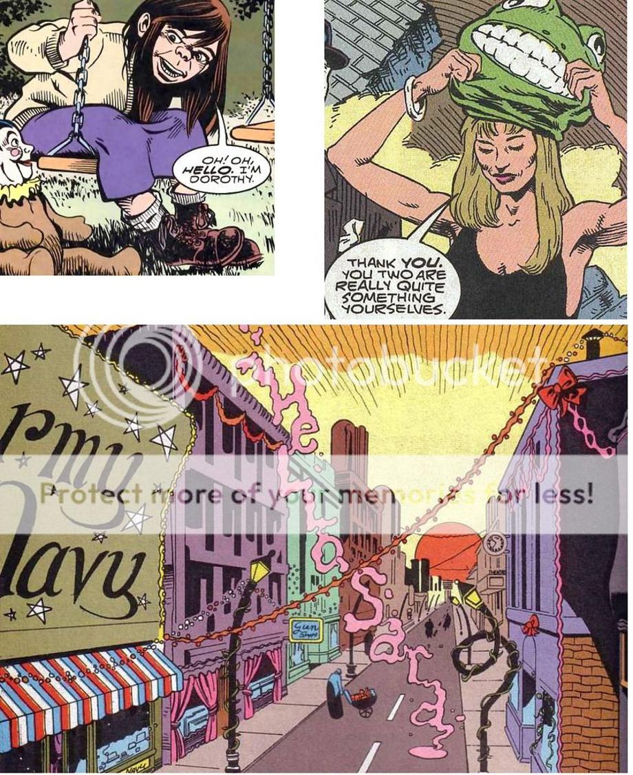 B) Dorothy Spinner (voiced by Sara Canning http://www.imdb.com/name/nm3048050/?ref_=nv_sr_1), Coagula/Kate Godwin (voiced by Nicole Sullivan http://www.imdb.com/name/nm0005474/?ref_=nv_sr_1), and Danny the Street (who doesn't speak, except...Well, in literal sign language), three major characters from Grant Morrison and Rachel Pollack's runs from the 1990's. (Crazy Jane would be the subject of a one-off episode.)