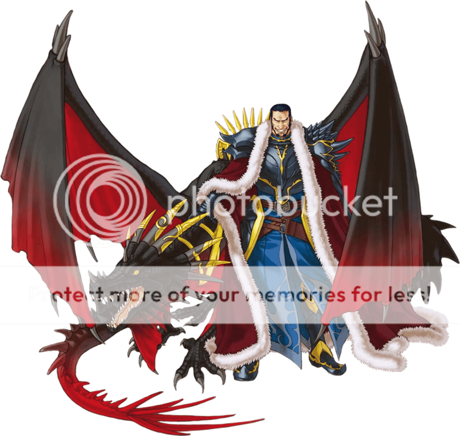 "Dheginsea is the King of Goldoa, home of the Dragon tribe Laguz and one of Ashera's Three Heroes who defeated the Dark God Yune. He is also known as the Black Dragon King. He had three children: Rajaion, Almedha and Kurthnaga. He is referred to by the Hawk King Tibarn as a "living and stubborn fossil". He constantly urges the Laguz not to fan the flames of war while the location of Lehran's Medallion is unknown: his top priority is to save the world from destruction. It is to this end that he maintains a policy of perfect neutrality."
