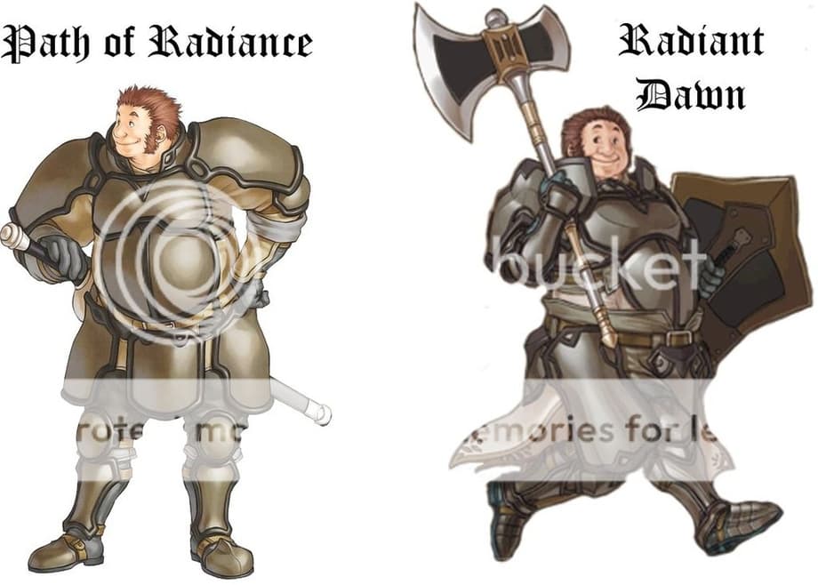 "Originally known as Gawain, Greil was one of the Four Riders of Daein, once called the "Divine Knight". He was remembered as the premier swordsman of his generation and his name was famous throughout Tellius. It was during this time he trained Zelgius, who called Gawain "invincible" during this period. However, in the year 626 he fled his homeland with his fiancee, the priestess Elena, after she was entrusted with Lehran's Medallion, and the melody Galdr of Release by the heron Lillia, the elder sister of Prince Reyson. They lived in Gallia with Gawain taking on the name Greil, and it was there that Ike and Mist were born. One day, tragedy struck when Greil made the mistake of taking hold of the medallion, and immediately went berserk. After engaging in a mindless slaughter, the medallion was eventually pulled from his grasp by Elena. When he returned to sanity, he found his wife impaled on his own sword. After her death, he hired the assassin, Volke, for the purpose of killing him should he lose his mind again, and slashed the tendons on his dominant sword hand so that he would no longer be able to wield a sword. He entrusted the medallion to Mist, who had the same gentle spirit as her mother, and forbade Ike from ever touching the medallion himself. Greil eventually founded the Greil Mercenaries and earned a living by performing tasks for various villages in Crimea. Sensing the danger that Daein posed upon news of the invasion, he quickly had Ike take on more responsibility within the company, and eventually fled with the mercenaries to Gallia in order to protect Princess Elincia from Daein during the Mad King's War. A day or so later, in the midst of the night, Greil engages in a duel with his former pupil from his days as General Gawain: the Black Knight. Ike shows up during the middle of the battle, when The Black Knight throws the sword Ragnell to Greil, saying that he wishes to fight General Gawain at his full strength. Greil tosses the sword aside, saying that he has thrown the name of Gawain away. He instead chooses to fight with his axe, Urvan. Ultimately losing to the Black Knight, Greil is mortally wounded and dies as Ike hauls him back to the mercenary encampment. In a later conversation between Ike and Titania, it is revealed that Titania loved Greil."