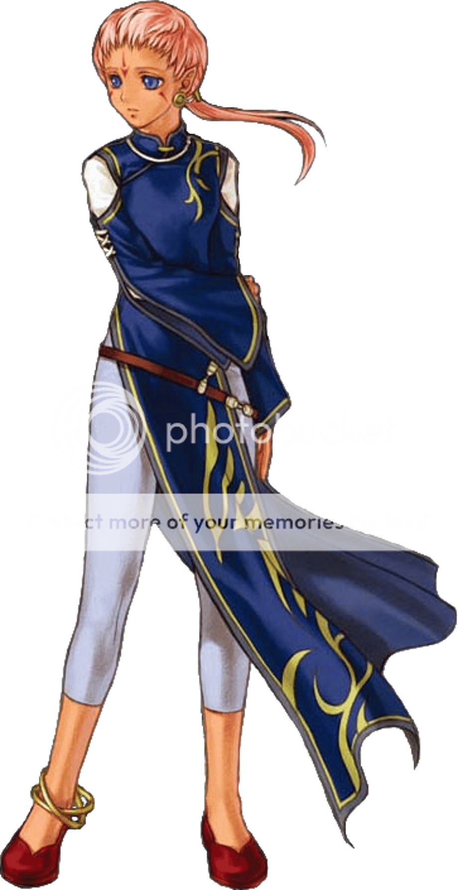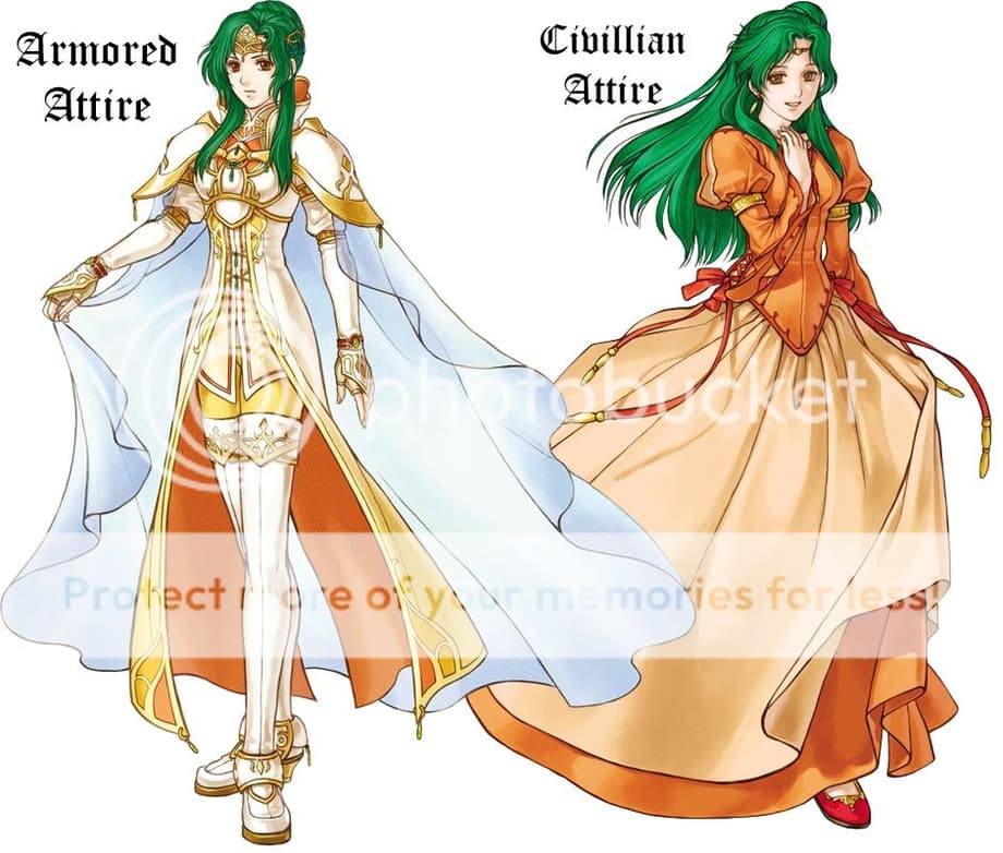 "Lucia is a young lady descending from the house of Count Delbray, the older sister of Geoffrey, and the milk sister of Elincia. She commands the Royal Guards with Geoffrey and spearheads a clandestine network of spies to monitor the internal affairs of Crimea. While details of her early years remain unknown, it is known that they were raised with the recently-born princess of Crimea, Elincia, at the royal family’s villa. As the three shared their childhood, they grew very close. Once Lucia grew older, she became a soldier in service to Crimea. Lucia is a wise and rational individual who treats almost everyone she meets with the utmost respect. She holds absolute loyalty to Elincia and is more than willing to undertake any tasks on her behalf, regardless of how difficult or unreasonable they may seem. Lucia is often the subject of long rambling love declarations from Bastian, who appears to be smitten with her. She usually responds to his advances with a nonchalant attitude and rejects him."