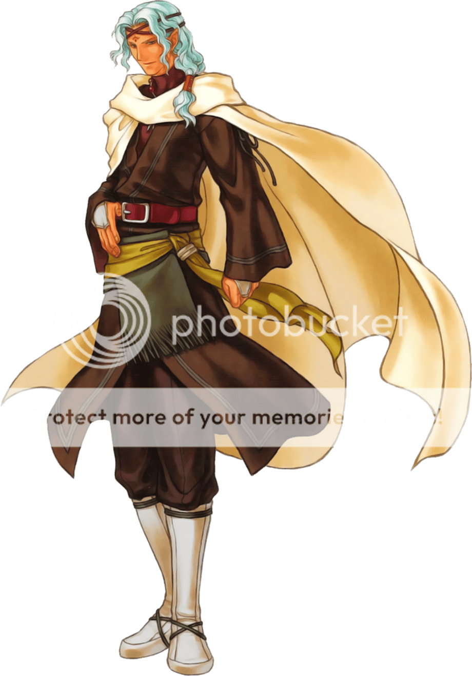 "Nasir is first introduced in this game as the captain of a ship sailing under the flag of Begnion. He is paid by Gallia to escort the Greil Mercenaries and Princess Elincia safely to Begnion. Nasir is later revealed to be a double agent, working both as a spy for Gallia and Daein. After successfully gaining Mist's trust, he betrays her by stealing Lehran's Medallion from her and delivering it to the King of Daein. When Nasir later appears before the siblings again, Mist readily forgives him for his actions, giving him little time to explain himself. When the Greil Mercenaries and their allies near the final battle, it is revealed that Nasir is a White Dragon and the grandfather of Ena, and that his main reason for betraying Ike's trust was to reunite Ena with her spouse. Nasir portrays himself as jaded and aloof, but is, in truth, compassionate. Unlike most of the other laguz characters encountered by the Greil Mercenaries near the beginning of their journey, Nasir does not appear to harbor any prejudice towards the beorc race. He even admits to having chosen to live amongst them, in the hope of one day seeing the barrier between the two races dissolved, and to having had his appearance and habits altered in order to pass as a beorc. Nasir deeply treasures kinship ties, as can be observed through his relationship with Ena. This has resulted in him carrying out several dastardly tasks on her behalf, such as betraying the trust the Gallians and the Greil Mercenaries have developed in him."