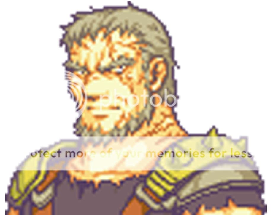 "Georg, a berserker, is the ghostly guardian of Durandal, while Kaim is the guardian of Armads. Eliwood and Hector, in their respective trials to claim the weapons, must defeat them."