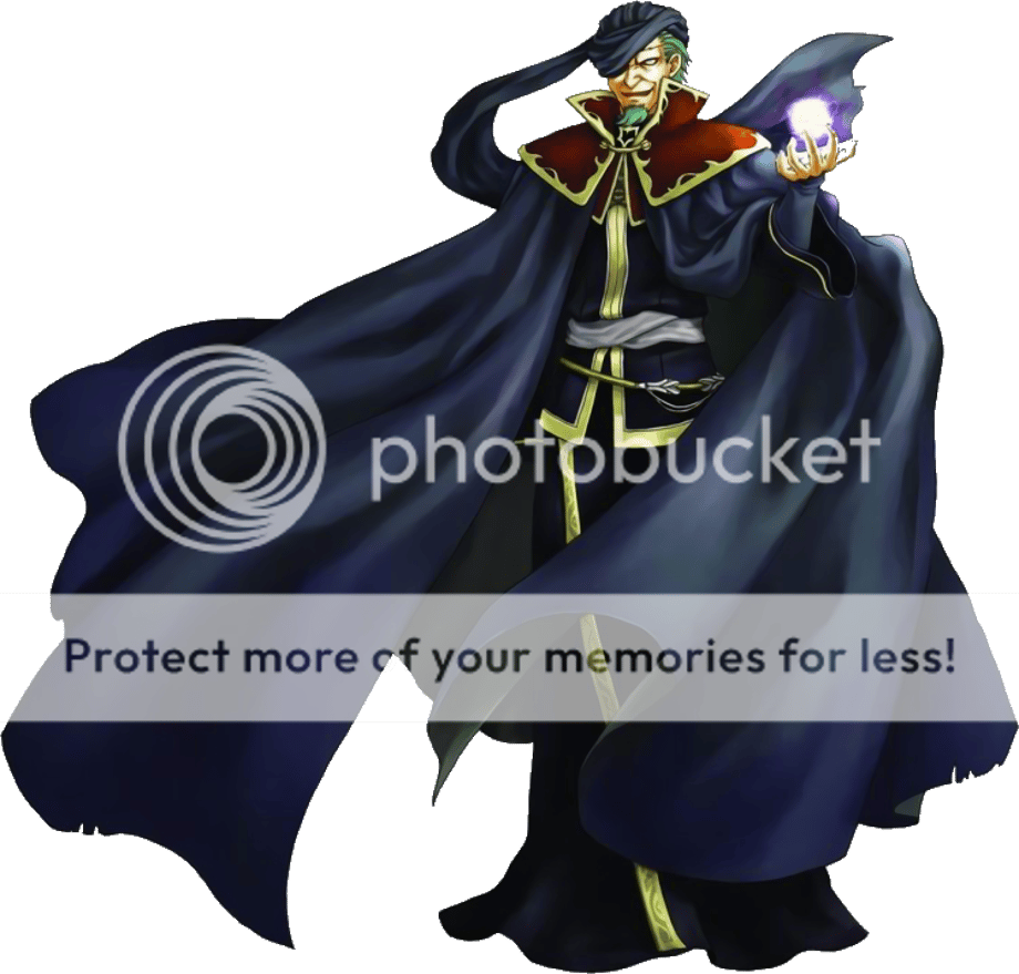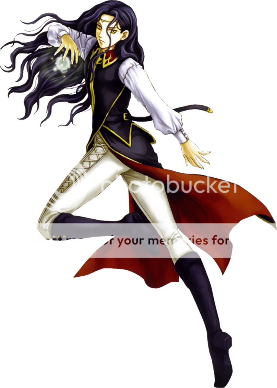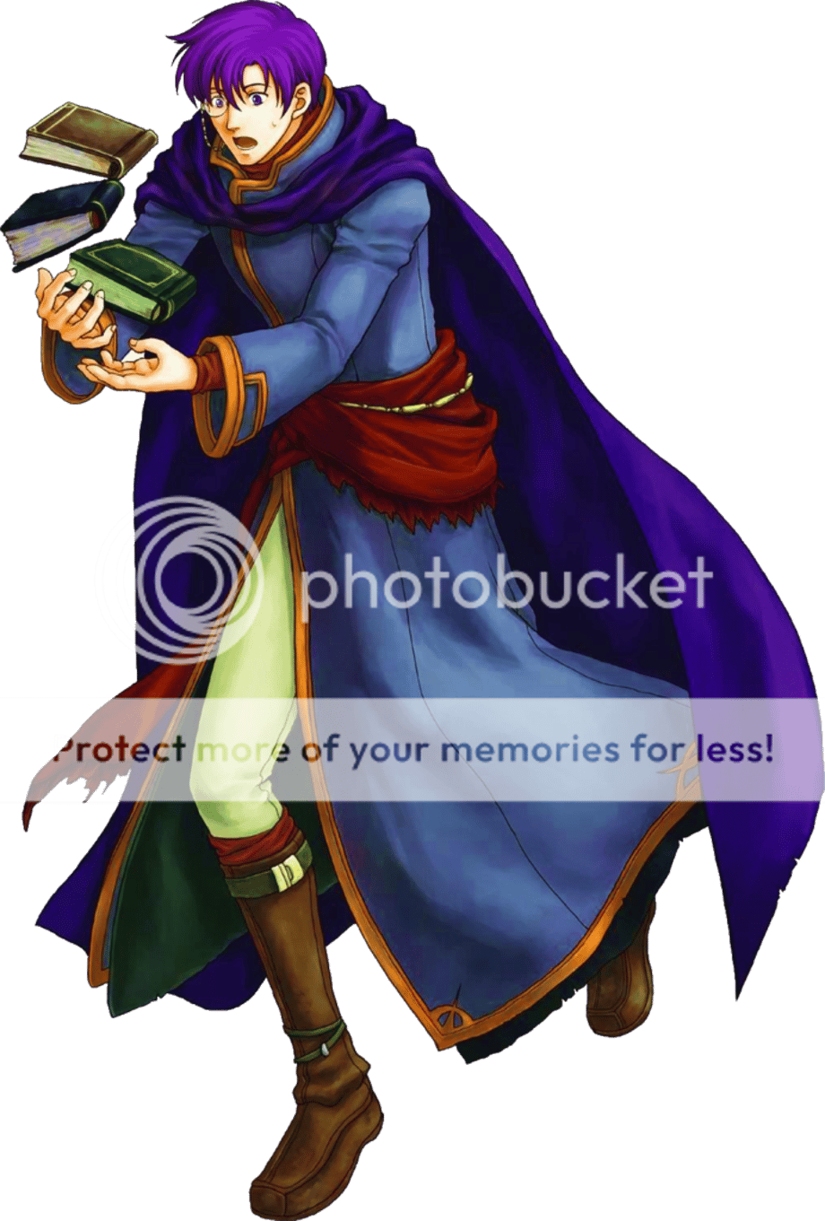 "Canas is a passionate scholar who has a tendency to read on the battlefield and unintentionally neglect the people he cares for. knowledge of the ancient magics has been passed down in his family for generations. He has three brothers, but all of them were taken by the forces of darkness. The elder magic Canas uses, like his brothers before him, is based on the forces of darkness and to use this magic, one must invite the dark forces within him. It is tempting to submit to the darkness, which is why Canas' brothers merely subsist. Canas is afraid of suffering the same fate of his brothers, but as he puts it: "However, I must see the other side. My curiosity pushes me ever deeper. It will be my undoing." Canas joins Eliwood, Lyn and Hector's forces when they undertake a challenge from Fargus' pirates in the port of Badon."