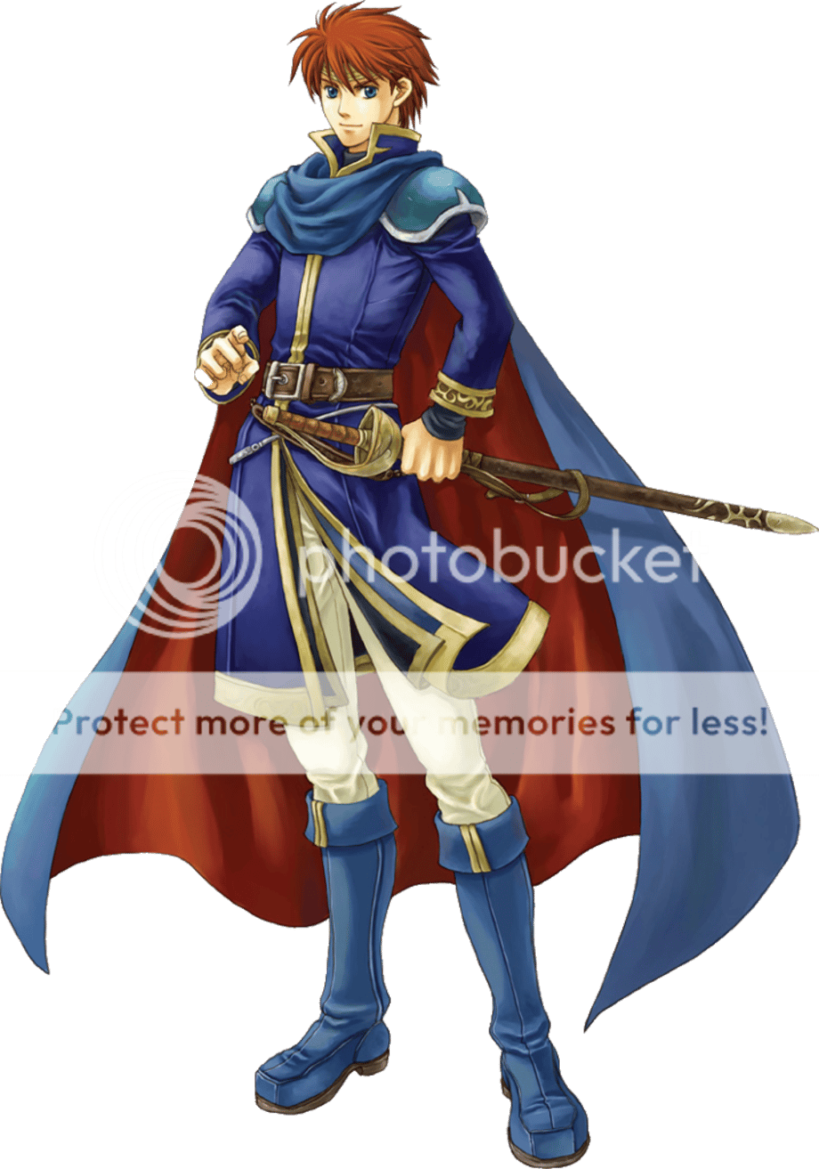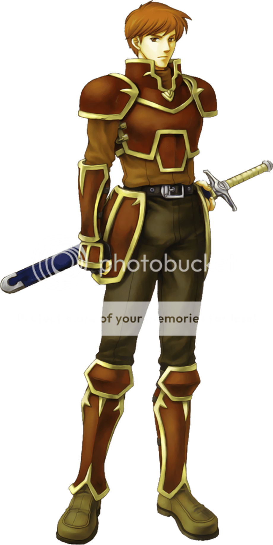 "Eliwood was born of the noble house of Pherae; his father was Lord Elbert and his mother was Lady Eleanora. His childhood best friend was Hector, the younger brother of Uther, the Marquess Ostia. These two attended school together and, as they grew older, their friendship grew as well. By chance, one day, when Eliwood was scheduled to meet with Hector, he stumbled upon a group of bandits who had captured a young girl named Ninian. After he set about rescuing the girl, he met Lyndis and decided to see if he could help her in her quest to free Caelin from Lord Lundgren. Eliwood convinced Caelin's neighbors to remain neutral in Lyn's dispute. Eliwood, a year later, is on a quest to find his father, who had been kidnapped by the Dark Druid, Nergal. His objectives soon change, however, and Eliwood fights a group of assassins under Nergal's control called the Black Fang. As the story progresses, Eliwood comes to battle with Nergal's morphs (artificial humans, some of who are sentient), Nergal himself, and a renegade Fire Dragon to save the world. To defeat Nergal, he journeys deep within the earth to retrieve Durandal, a legendary sword and the eponymous The Blazing Blade or "Blazing Sword," which was used by Roland, the founder of Lycia. Eliwood's other primary weapon is a rapier."