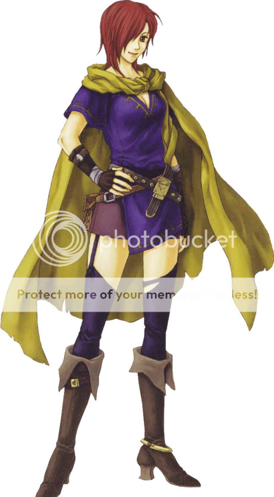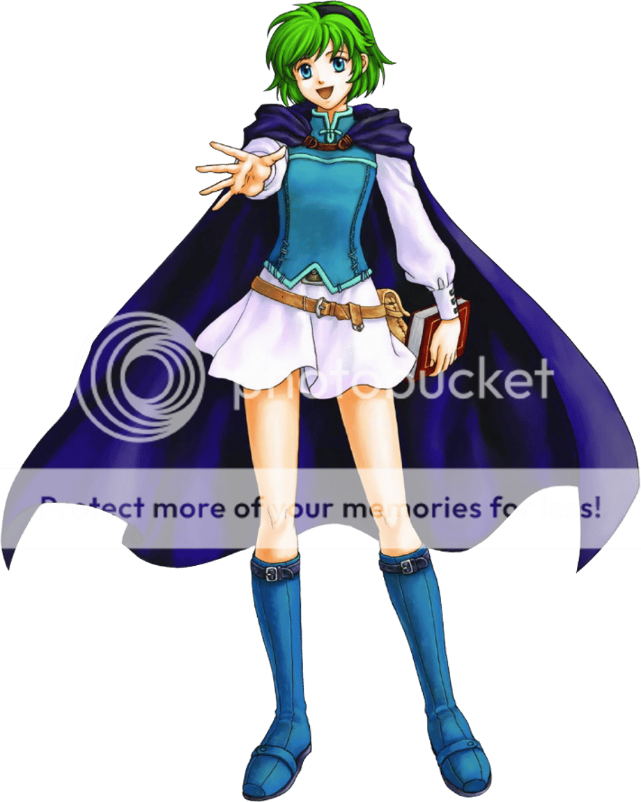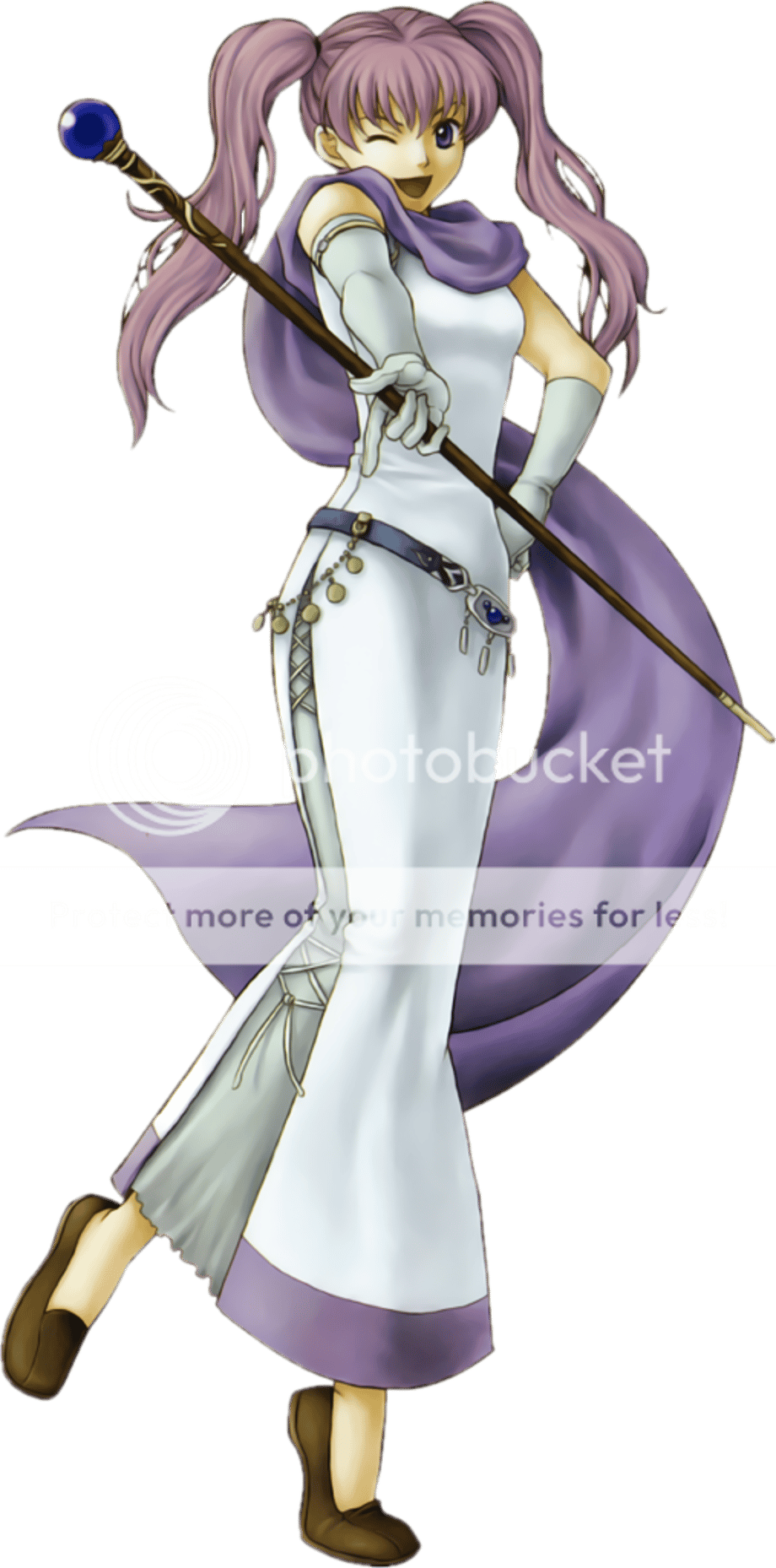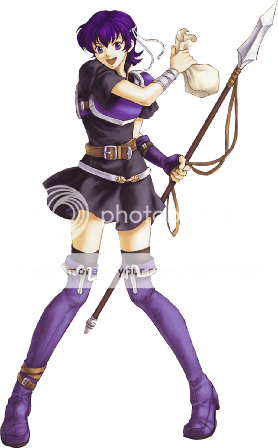 "She is a fortune-teller who joins Eliwood and Hector's army in their advance on Laus to offer augury of the battles ahead. She leaves the group after they proceed to visit Bern, and her task is then taken over by the newly re-recruited Nils, who offers his services for free."