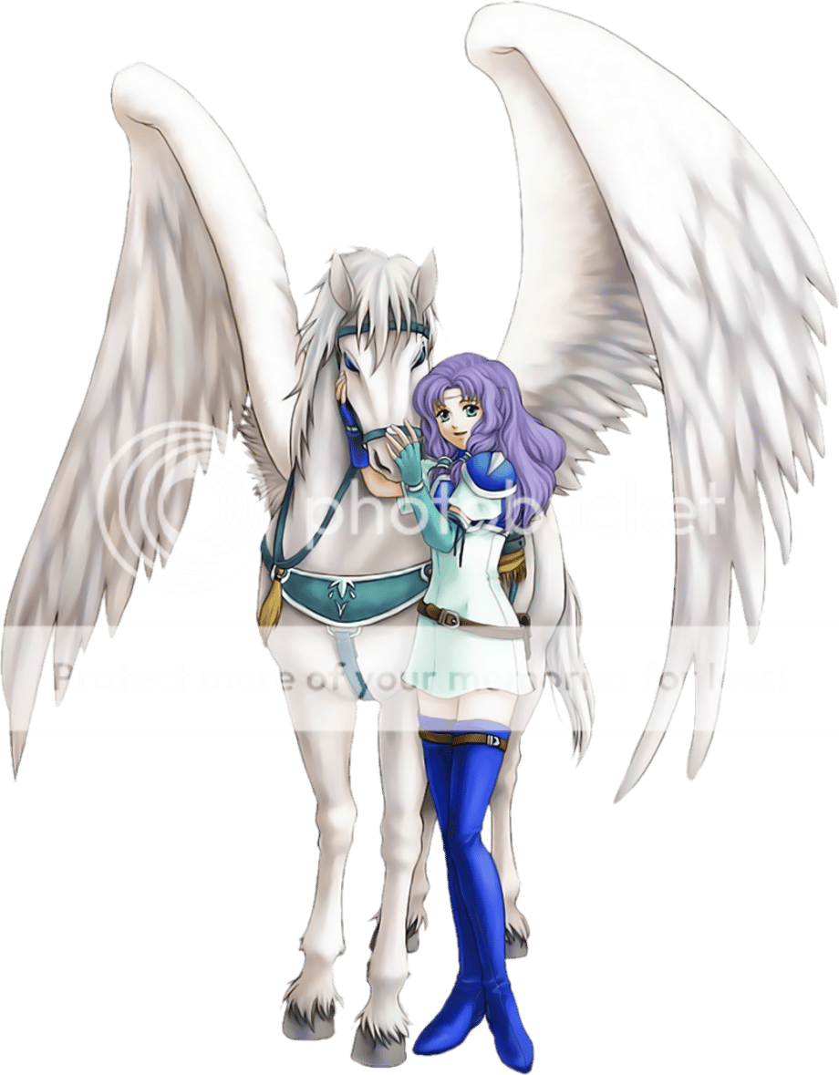 "Florina is a Pegasus Knight-in-training from Ilia. She is the younger sister of Fiora and Farina as well as a close friend of Lyn. Her pegasus steed is named Huey.One time when she was in Sacae, she fell off her pegasus and landed in a tree. She was found by Lyn caught in the tree when she was being attacked by a swarm of bees. Lyn helped her down, and the two became fast friends. Florina is very shy around the other characters, especially men and archers; she is reserved even when talking to women. Despite her general disposition, she is a very different person when she is at a festival and "starts coming out of her shell". It is also revealed she used to cry herself to sleep every night. Farina could also make her cry at every practice. She hopes to become like Fiora, whom she really idolizes. Florina eventually realizes that she will never become her own person if she keeps relying on Fiora to protect her. Despite her general fear of most men, she seems to have a small crush on Hector after he saves her from falling. However, she has trouble thanking him for it because of her timidness."