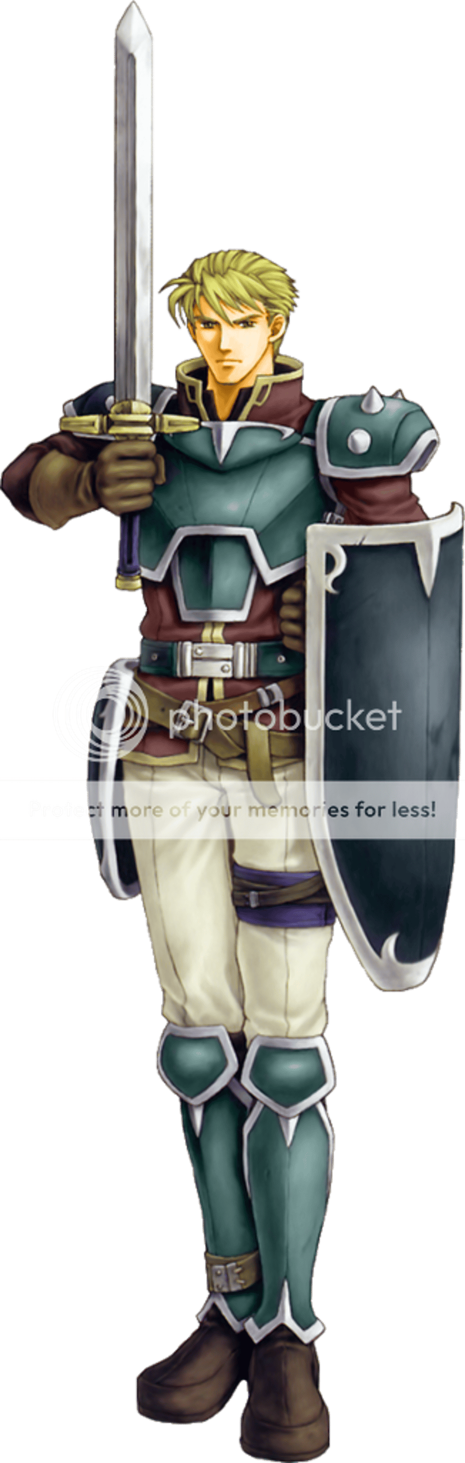 "Kent is a stern, uptight knight who always follows the rules. He was trained as a knight of Caelin, along with his friend Sain, by General Eagler, the knight-commander of Caelin. As knights, he and Sain were sent to Sacae to locate the marquess's granddaughter and to escort her safely back to Caelin. While in Bulgar, the largest city in Sacae, they meet the granddaughter, Lyn, and join up with her and her friend, the player. They escort her back to Caelin and help her to defeat her great-uncle Lundgren to reclaim the throne for the marquess, Lord Hausen. In gratitude for his actions, Kent is promoted to the rank of knight-commander of Caelin. One year later, he joins Eliwood's party along with Lyn when Eliwood helps them to reclaim Caelin from Lord Darin's control."