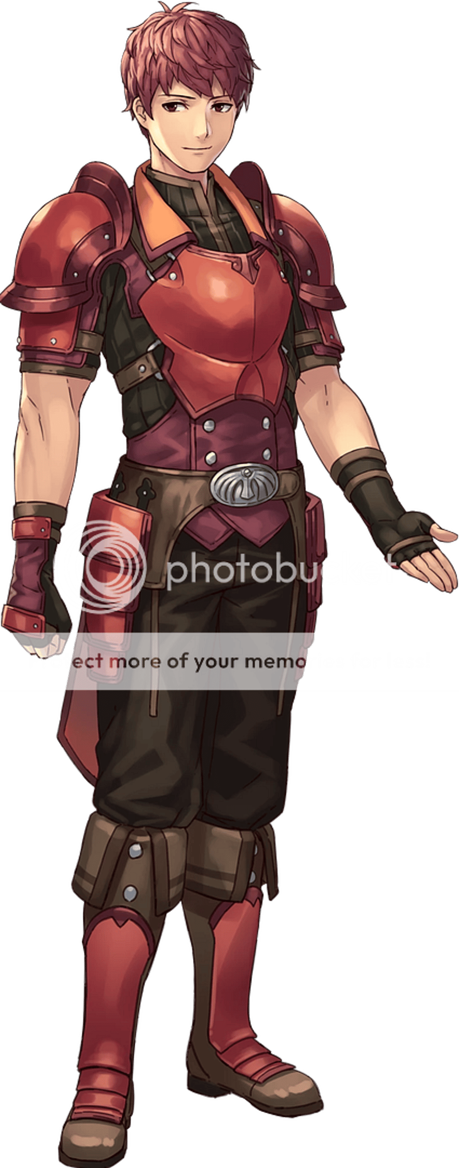 "Tobin is a denizen of Ram Village and one of Alm's childhood friends. He joined the Deliverance in order to travel the continent and gain money to support his large family. While Tobin possesses a stubborn, serious, and direct personality, he is rather dense, being plagued with social obliviousness, and is poor at reading other people's emotions. Being the eldest of his family, Tobin maintains an air of brotherly warmth, playfulness, and kindness which inevitably transfers to his friends, those of whom he is extremely supportive of. Tobin suffers greatly from an inferiority complex, as he is always competing with Alm and Gray to assert his superiority, the superiority of which he can never achieve. In his final base conversation, Tobin expresses his newfound understanding of his place in the world to serve a greater cause, and not to be in a position of relative ascendency. He further expresses that this understanding is not one he is content with, but rather, he is only accepting of it. Heavily valuing familial ideals, Tobin joined the Deliverance to support his family in monetary means; he constantly picks up souvenirs in his travels between battles for his many siblings back home."