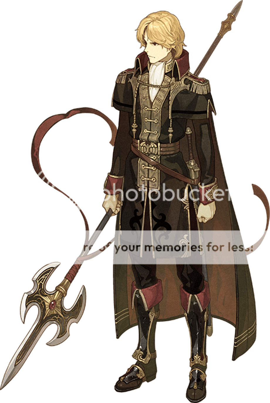 "The son of a Zofian noble family, Fernand's and Clive's families knew each other for a long time, leading him to grow up with Clive and Clair like siblings. Fernand had an elder sister as well as two younger siblings. The latter were a result of his father's second marriage, but he was nonetheless very close to them both. Seeing the injustices lead by Desaix, Fernand, Clive, Clair, and Mathilda established the Deliverance, an organization dedicated to protecting Zofia and eventually, overthrowing Desaix. While Fernand was a dedicated knight who believed in protecting the masses, a massive drought had plagued Zofia for the past few years. Many of the commoners felt that the nobles were hording resources to protect themselves while ignoring the masses. This lead to a large rebellion in which Fernand's family estate was caught in, resulting in their death. This left a large fissure in his heart as, while he still continued to oppose Desaix, he grew to despise the common masses.