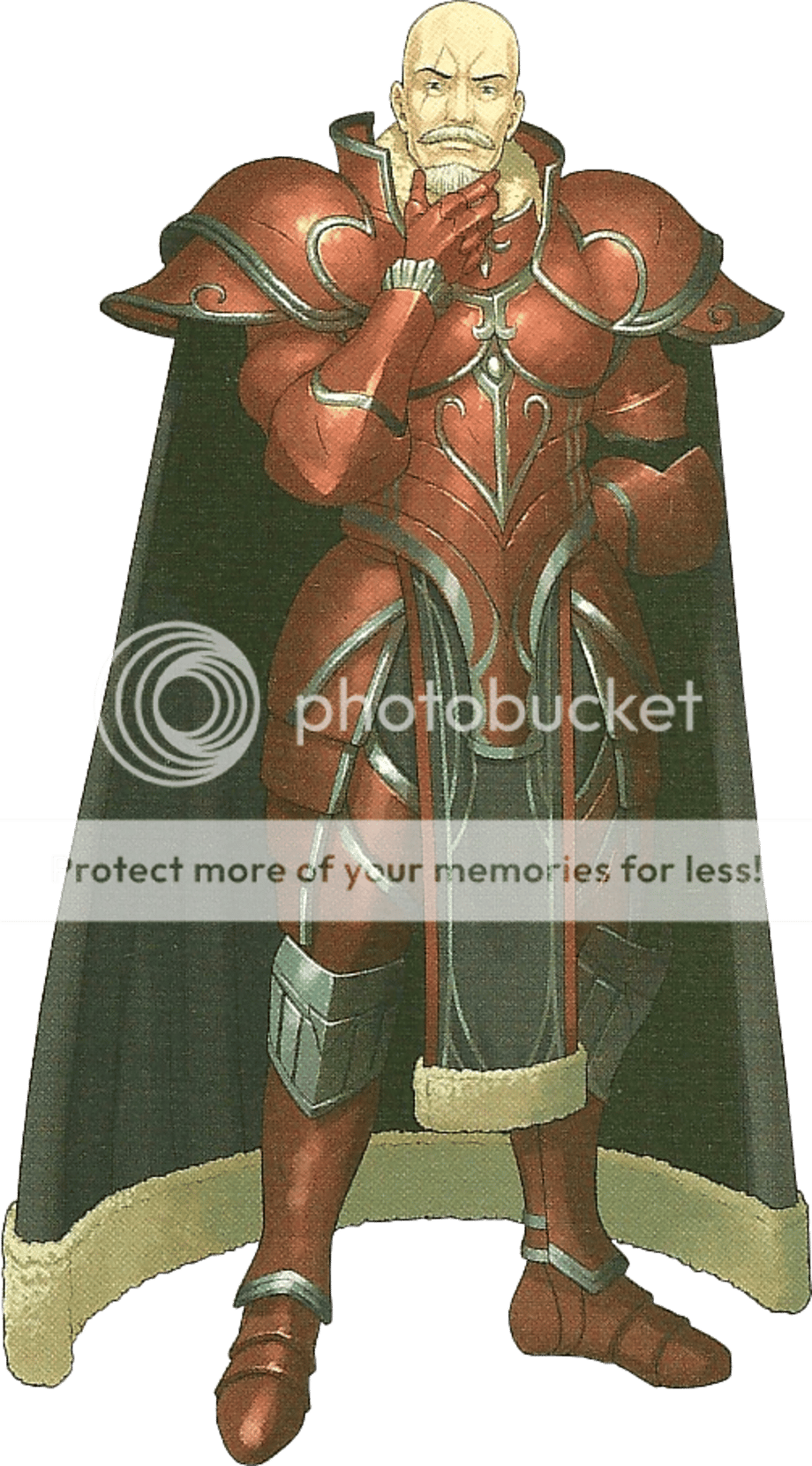 "The fourth Emperor of Rigel, as well as a renowned general who stood on the battlefield from a young age, with numerous victories to his name, Rudolf was chosen as the successor of Rigel III despite being only an indirect descendant due to his ability to wield the Falchion and bearing the brand of Duma. Having had a strong relationship with Mycen in their adolescence, both were thoughtful yet hot-blooded men, who would stay up all night to debate Rigel’s future and current state. Following his ascension, a young Rudolf met with the War Father at Duma Temple. During this time, Rudolf sensed Duma’s disturbing descent into madness. Nevertheless, he pledged dominion of Valentia to Duma. However, he did not specify the time of invasion; instead, he ruled while promising to prepare for war. Thereafter, in order to convince Duma of his intent to conquer Zofia, he bolstered the Rigelian army’s armaments. Seeking guidance, Rudolf met with Halcyon, the High Priest of the Duma Faithful. It was then that he received a prophecy foretelling Valentia’s spiral into destruction, with only two with special Brands, one born in Zofia and another in Rigel, held the power to free the Valentian continent from the gods’ control–the “Children of Fate”. About 17 years prior to the start of the story, Rudolf was blessed with a son who bore a special brand of Duma on his left hand. Upon seeing this mark as well as receiving a report that a Zofian princess with a Brand was born around the same time, Rudolf realized that Halcyon’s prophecy was in motion, and secretly met with Mycen, where he entrusted his son to him to raise into a great warrior. Through the years, Rudolf enacted a plan to spur the Valentian people into conflict in order to end the rule of Duma and Mila on the Rigelian and Zofian people respectively, both whom he viewed as a danger to humans as a whole. During said preparations, a man was washed ashore in Rigel and discovered by a Rigelian priestess, who showed great skill as a knight; the two became close. Naming him Ezekiel, or Zeke for short, Rudolf tasked him to follow a man who bore a mark on his left hand should he ever meet him in battle. Zeke would later uphold this promise, following Alm in his cause.