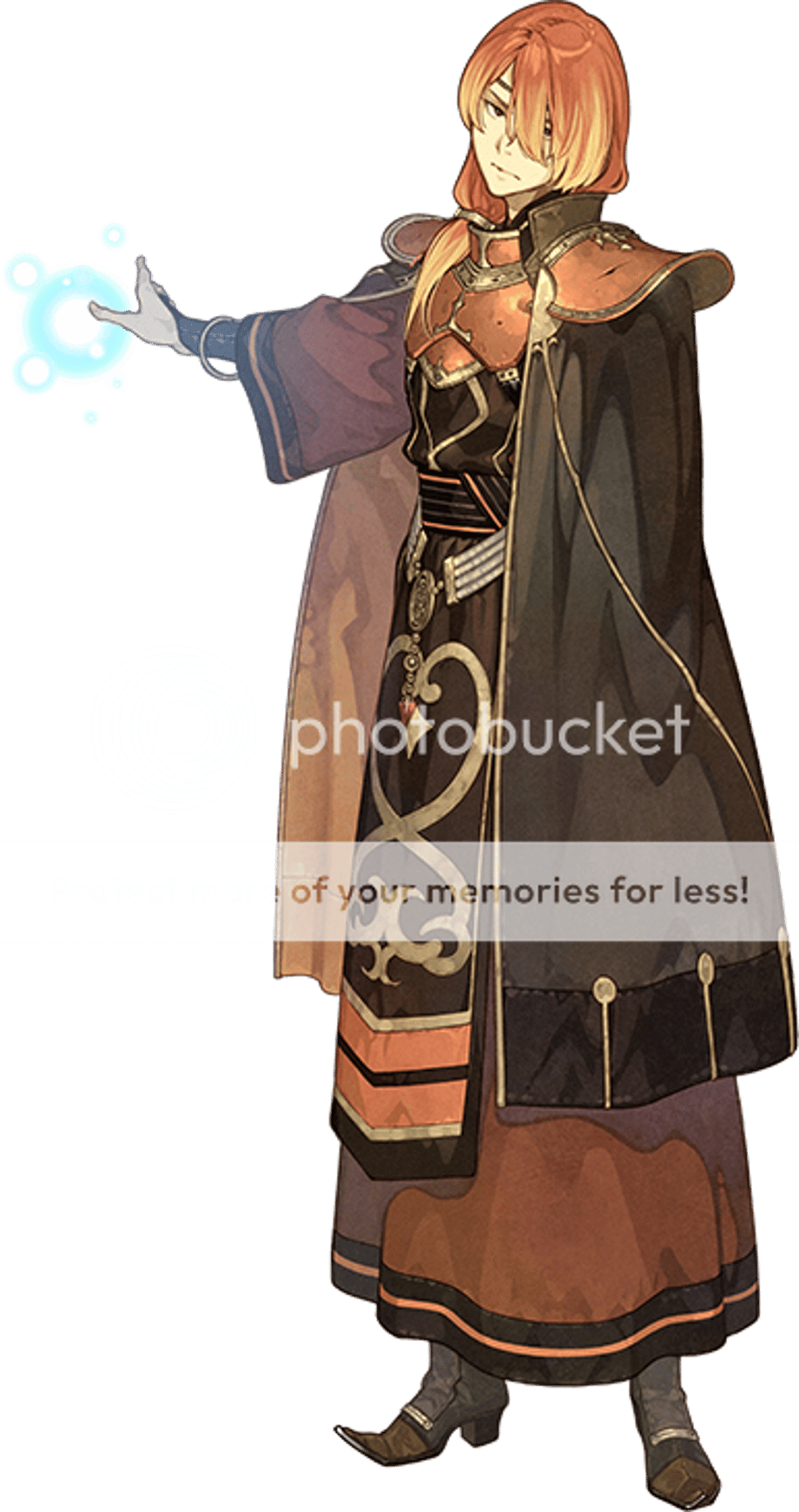 "Descended from a Zofian proficient in magic, Luthier is a mage who lives in a village located at the Zofian borders. When his younger sister Delthea is brainwashed by the necromancer Tatarrah and forced to help him guard the floodgates between Zofia and Rigel, Luthier begs for Alm's help when he enters the Forest Village, and offers his services in return, joining Alm's army. Fully devoted to mastering the family's traditional art of sorcery, he takes his training very seriously to the point of his younger sister's lack of interest in magic greatly frustrating Luthier as no matter how hard he trains, he will never reach the heights Delthea is capable of reaching. Such dedication causes Luthier to show narrow interest to the people of society, with Delthea often berating him for being so reclusive to the point which he admits that his only friend in his village was a cat. However, Luthier does manage to befriend Alm, his first real friend. As a result, he's inept on how to interact with others or read social cues. For example, he outright asks Alm if they are friends, and his little sister makes fun of his single-minded conversation of magic to others. He has a strained relationship with Delthea, finding it impossible to deal with his younger sister’s selfish streaks, but deep down truly cares for her and is only strict with her because he wants her to be loved."