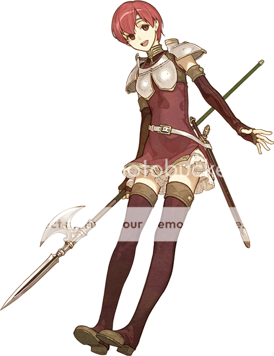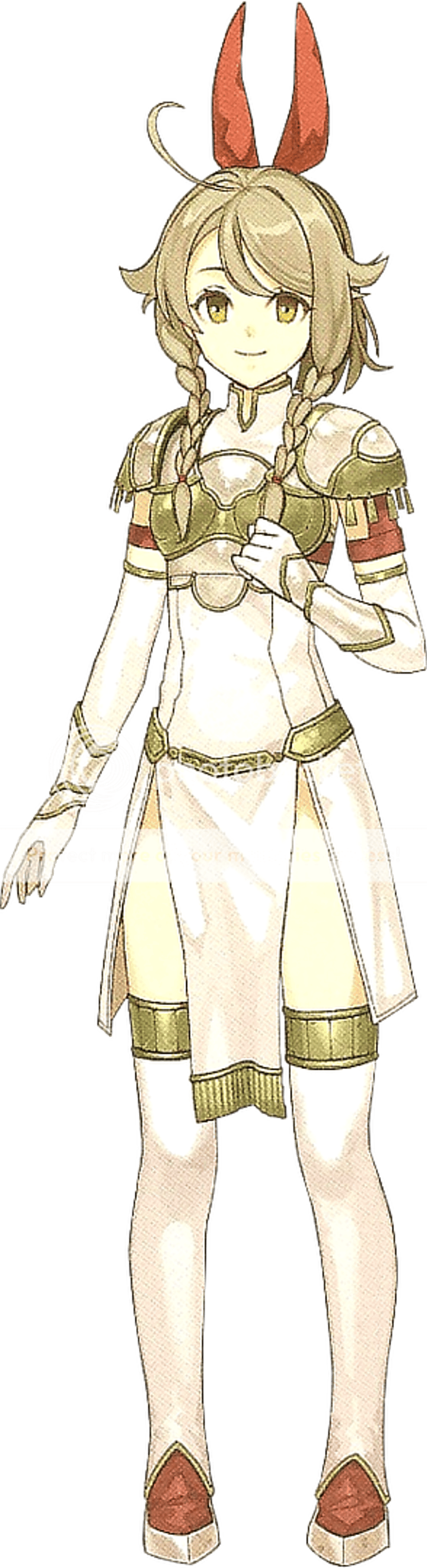 "Emma is a trainee pegasus knight from the continent of Elibe [of Archanea's universe]. Emma is fairly inexperienced and ignorant. She is a very cheerful thirteen-year-old girl, but she also seems to fluster easily. She always strives to better herself and further her training, being a fledgling pegasus knight, though this makes her easily influenced. Although she is a bit of an airhead, oftentimes her keen senses can suddenly rear their head. She and her travelling companion Randal were visiting Valentia along with their friends Yuzu and Shade, when they were unexpectedly separated; Emma and Randal wound up on the western half of Zofia. Alm and company save them from a band of thugs that Randal cheated in a game of chance, which causes them to join the group."