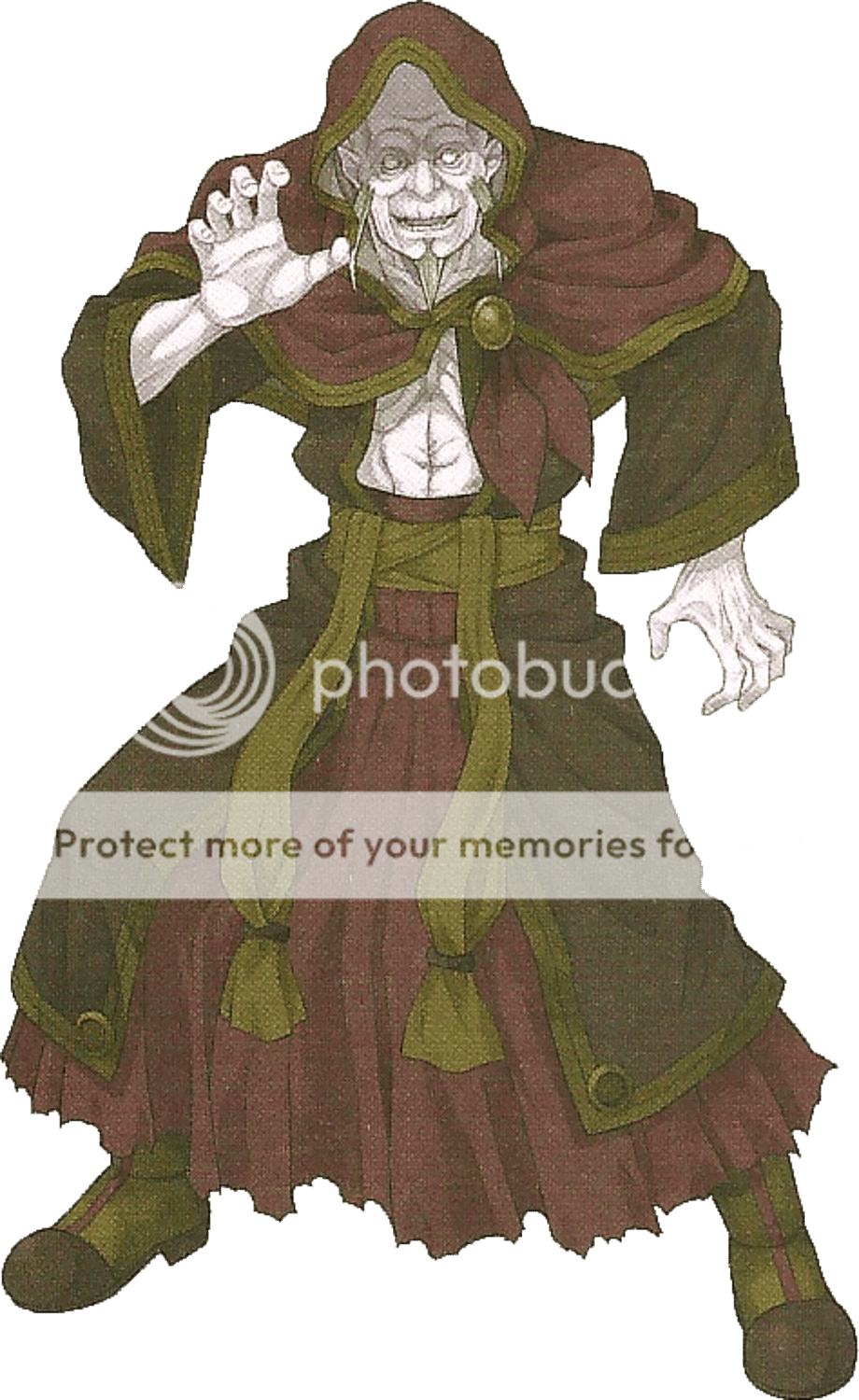 "Jedah is a priest of the Duma Faithful who got into a dispute with the High Priest Halcyon and banished him, gaining control over the church. He is the father of Marla, Hestia and Sonya until he used them (except for Sonya) as sacrifices to Duma to turn them into witches. He also serves as adviser to Emperor Rudolf. As his unearthly appearance suggests, he wields immensely powerful magic. He is the one responsible for placing the sealed Mila in Duma Tower, and convinces Celica to offer her soul to Duma in order to end all the suffering plaguing Valentia. Celica desperately accepts, and later on, after granting her a final chance to bid Alm farewell, is turned into a sword-wielding witch. To Jedah's shock, Mila's spirit allows Alm to unseal the Falchion sword and use it to free Celica from her transformation, causing Jedah to flee. Jedah makes a last stand (along with his witch-turned daughters Marla and Hestia) to protect Duma, but falls before Alm and Celica's combined forces, with Celica herself and Sonya dealing the death blow.