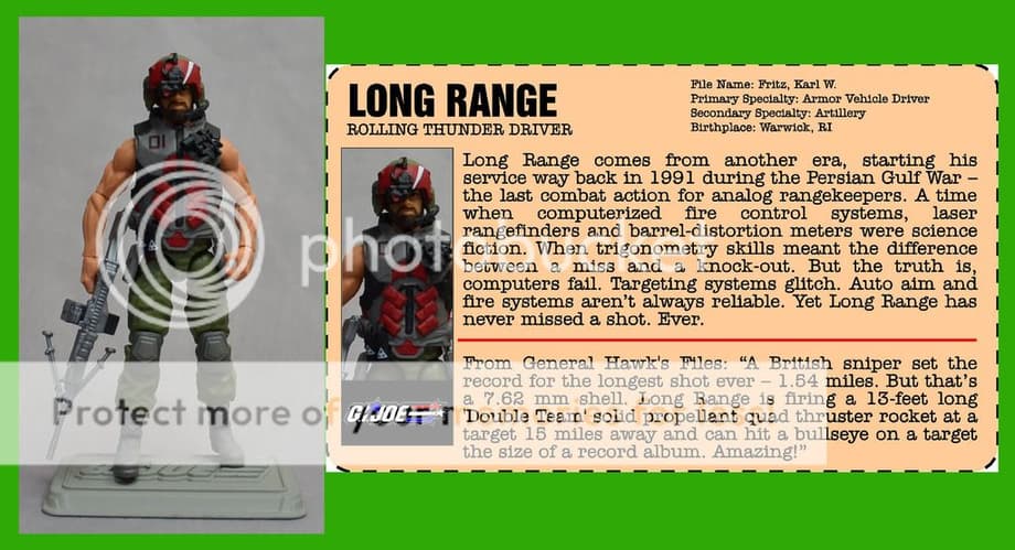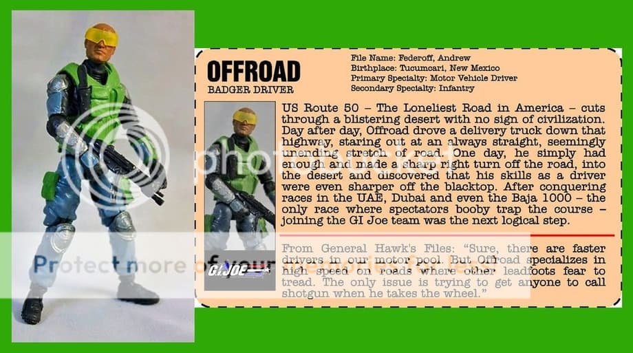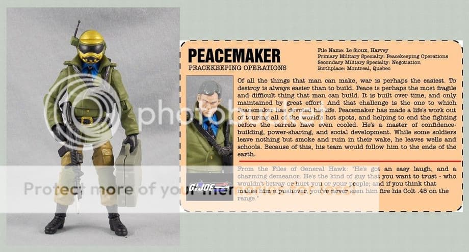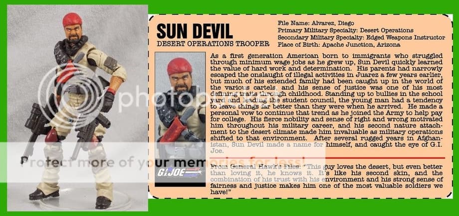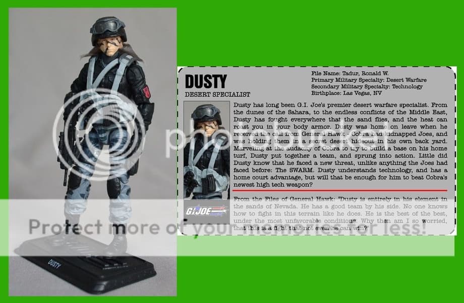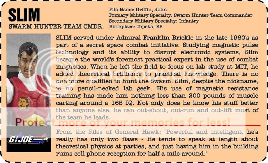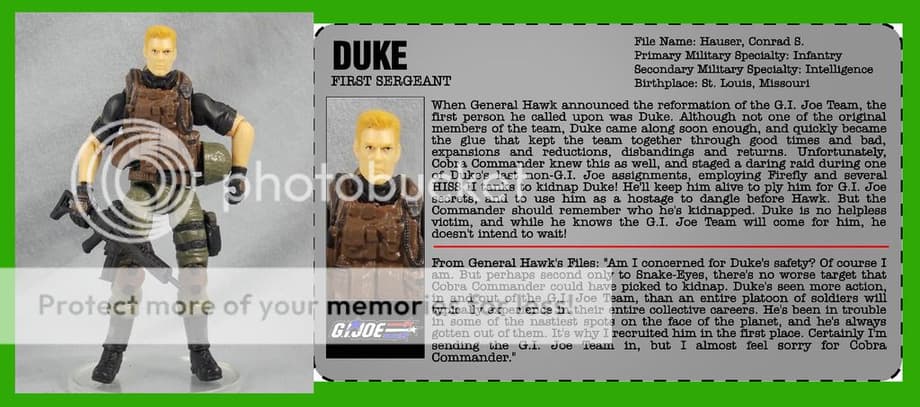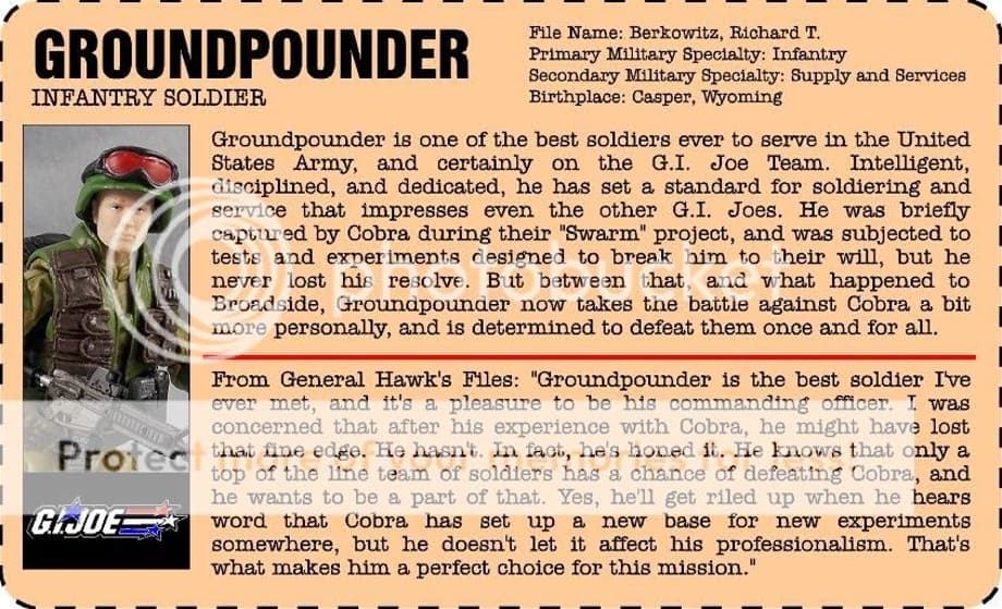 Since we don’t know what, if anything, Hasbro has planned for our favorite brand. Bucky, Dusty79 and myself decided to show off our view of what GI Joe could be. We were helped along the way by many others: Patrick ‘’Notpicard’’ Stewart, Justin ‘’General Hawk’’ Bell, Mayor, GITrekker and, of course, Kirk Bozigian. This project would not have been possible without their help, time, effort and input. Thanks guys!"