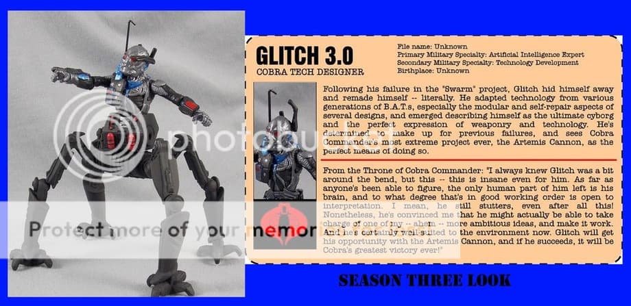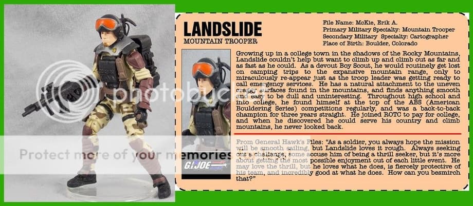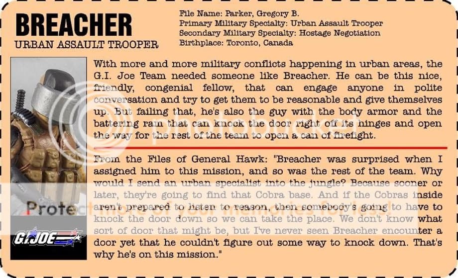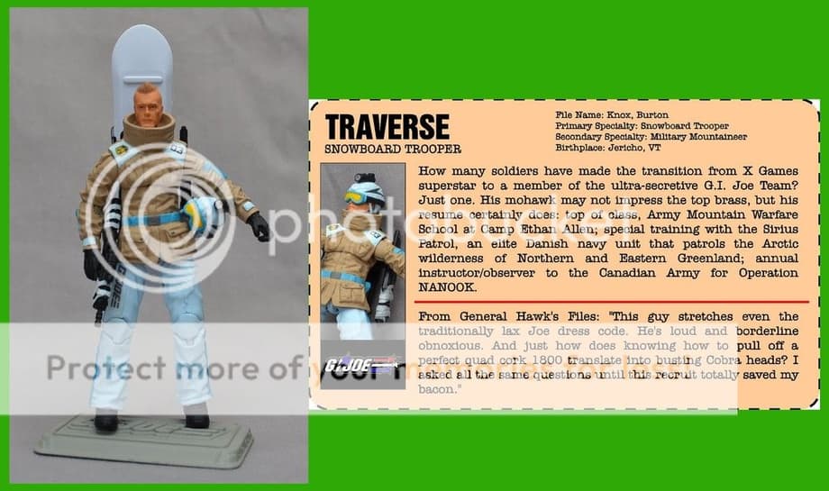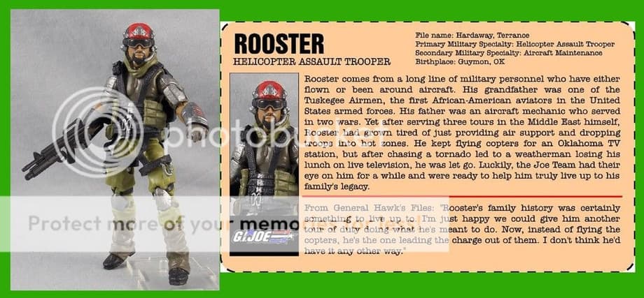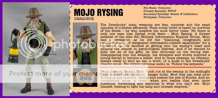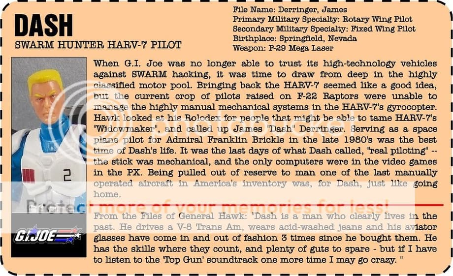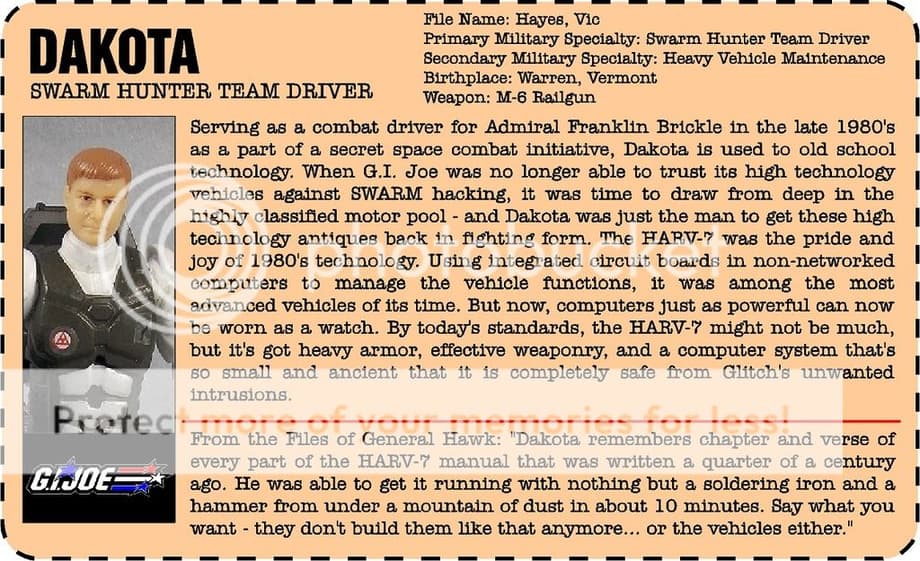 Since we don’t know what, if anything, Hasbro has planned for our favorite brand. Bucky, Dusty79 and myself decided to show off our view of what GI Joe could be. We were helped along the way by many others: Patrick ‘’Notpicard’’ Stewart, Justin ‘’General Hawk’’ Bell, Mayor, GITrekker and, of course, Kirk Bozigian. This project would not have been possible without their help, time, effort and input. Thanks guys!"