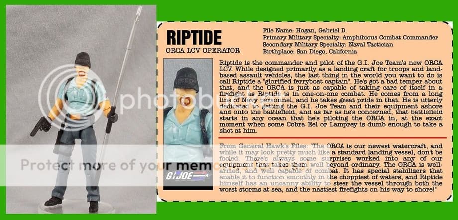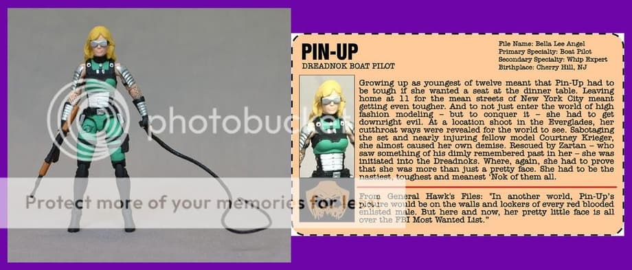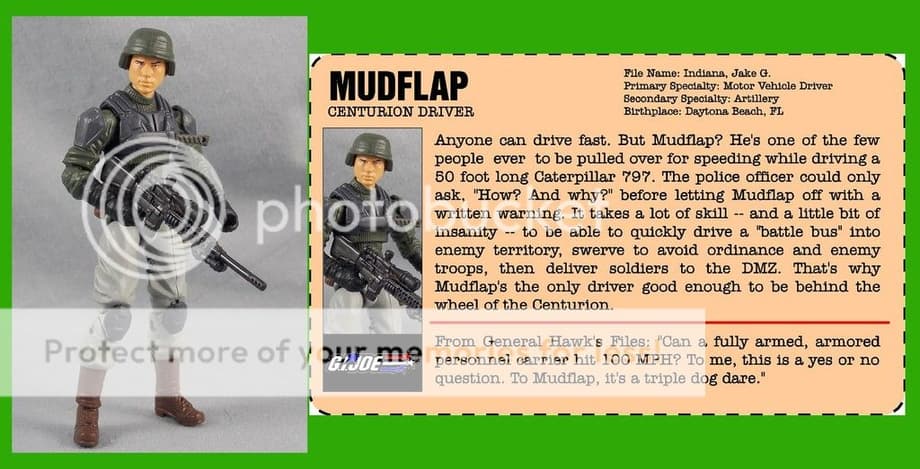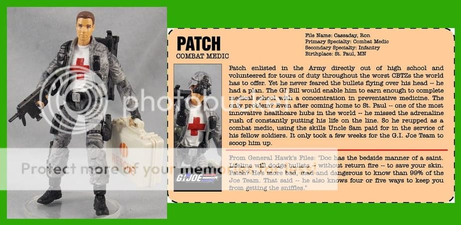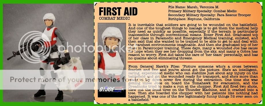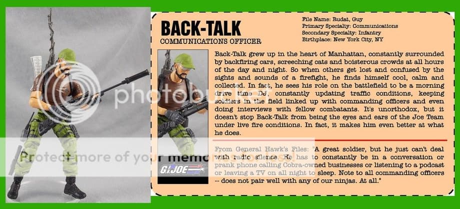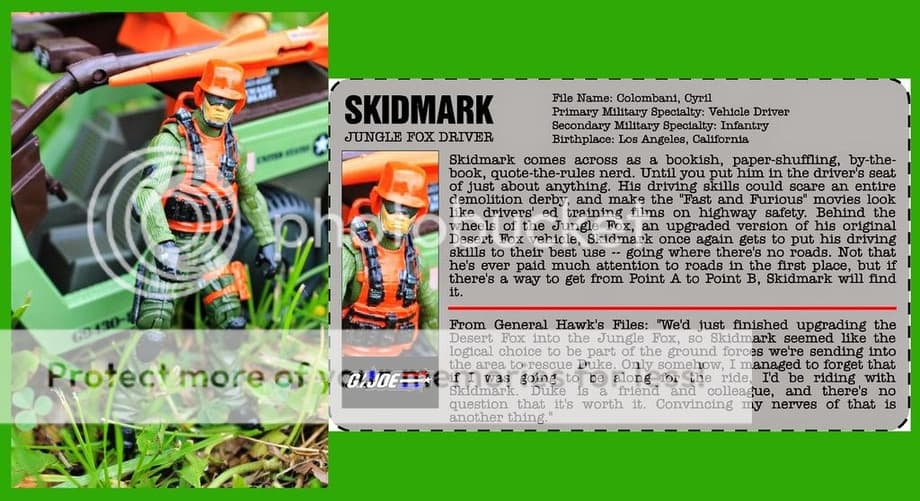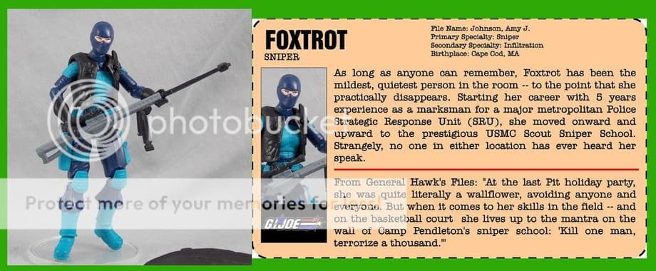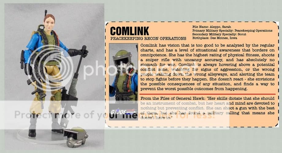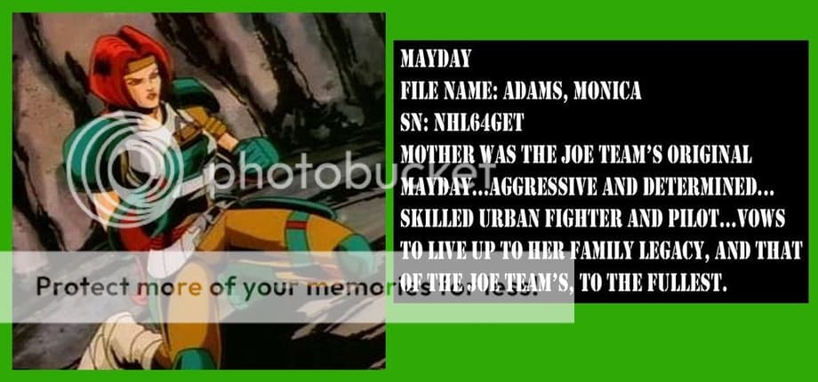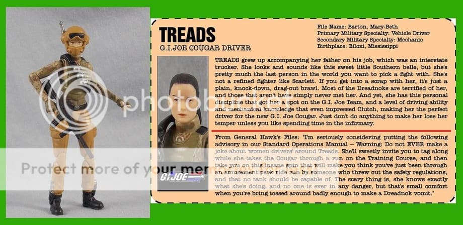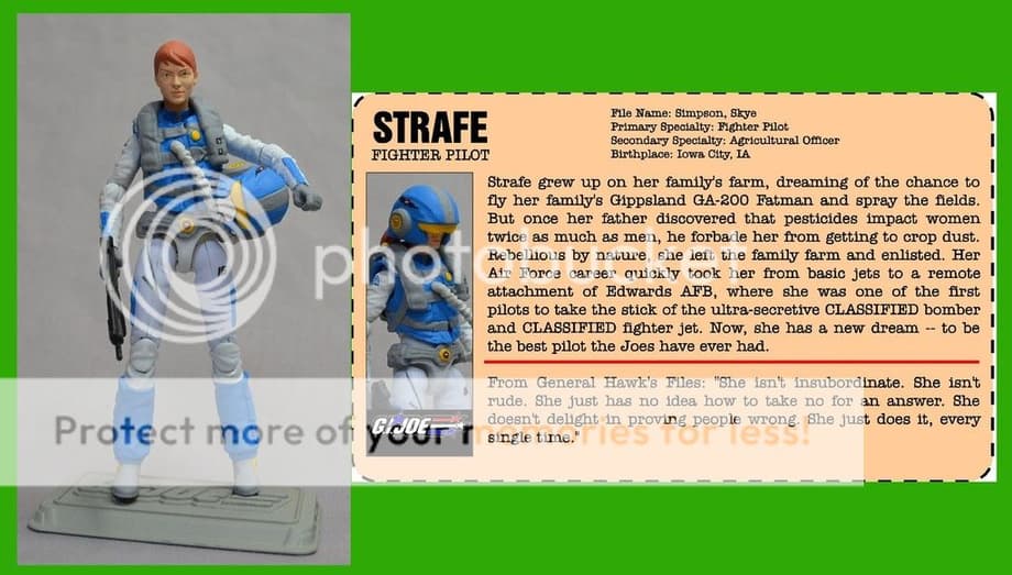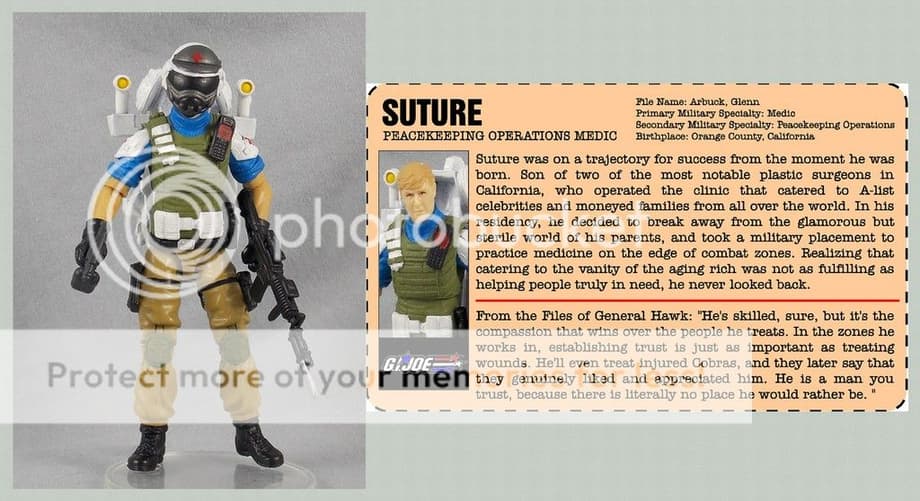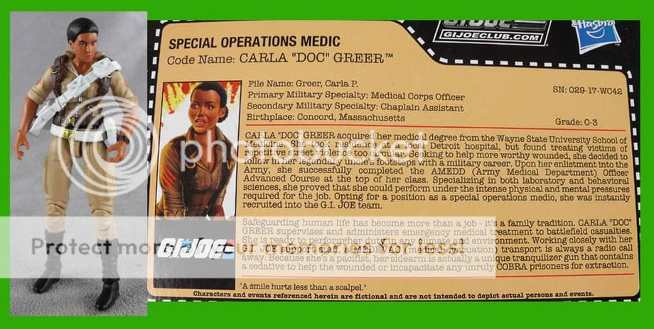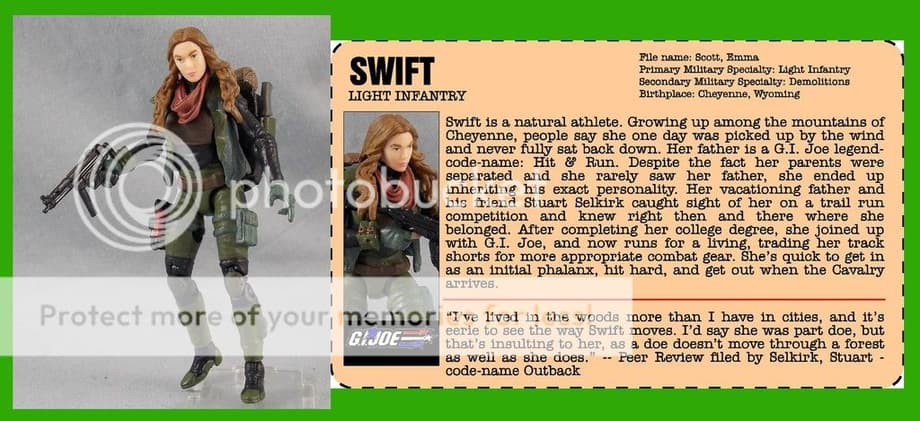 *shirleydoe commentary: "I love that – like lucha libre and fraternities – the Joe team can have dynasty members. That’s why she’s Hit and Run’s [the Joe team's original light infantry trooper from 1988] daughter. Well, that and to make Justin from General’s Joes happy."