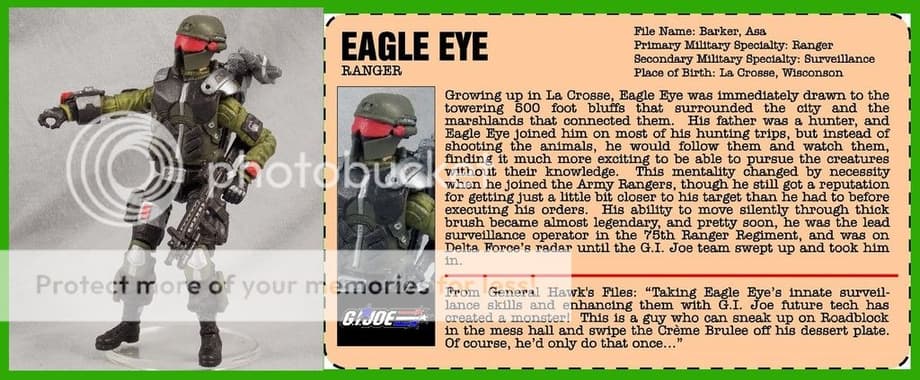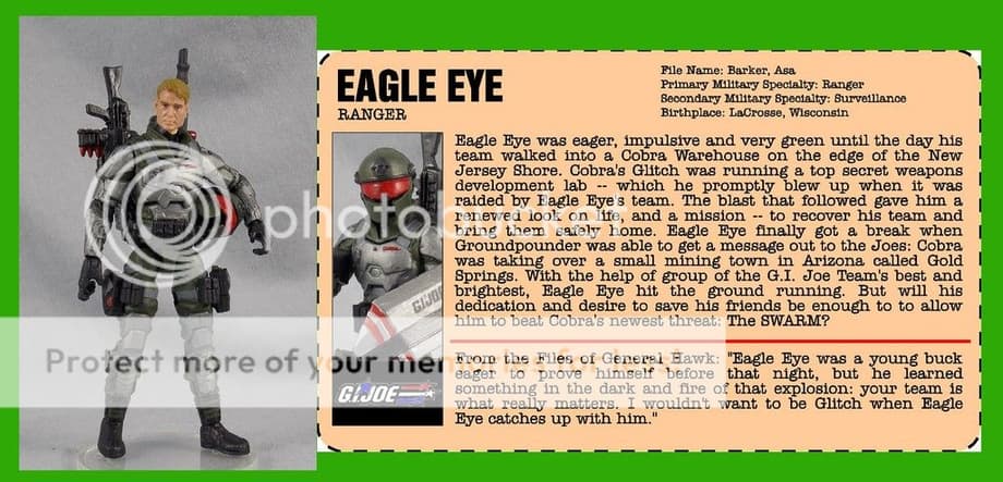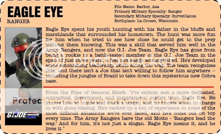 Avengers Assemble/Ultimate Spider-Man/etc., BUT I think the voice used for that portrayal would work well for Ballistic. He'd be great as this Joe team's steely-eyed sharpshooter. I even have an in-story explanation for the character's name change in real life: he's the protege of, you guessed it, Resurgence's Eagle Eye! He takes it up to honor his former mentor as a show of respect.