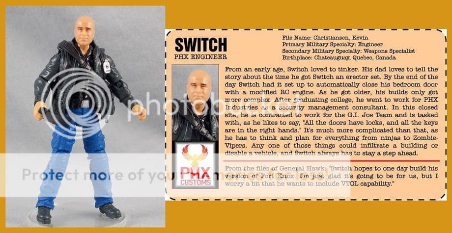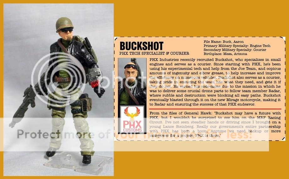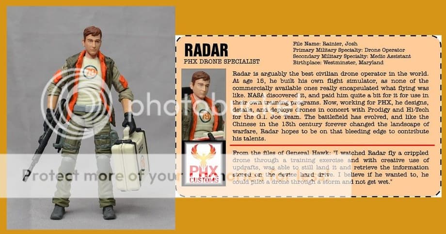 Blindspot. I figured he could utilize some of the latter in a portrayal of Radar, who's based on the third Phoenix Customs founder Dusty79. (He also has an interesting story behind the creation of the character and figure.)