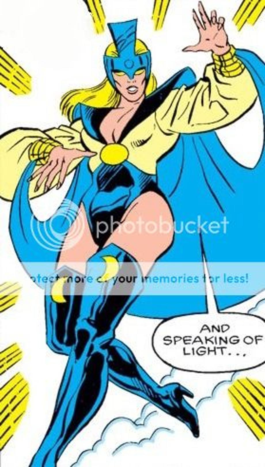 Little is known about Melissa Hanover's life before being recruited by Nighthawk to serve in the Redeemers. Moonglow is a highly manipulative member of the team, a powerful illusionist to the point where both sides are convinced of various things about herself which she has created with her illusions. She creates a statuesque, blond, and beautiful woman as a guise to be amongst both groups. In reality Melissa's a portly woman who spends all her time hiding in the background of actual fights, because she can't handle them physically. She's also shown as one of the nastier characters on the Redeemer's side. When Moonglow (undercover as a new recruit) snuck into the Squadron’s labs to find, retrieve, and transmit data on the Behavior Modification Devices to her fellow Redeemers, AIDA notified Ape-X of the transgression. Because Ape-X’s own behavior modification included a clause that she could never turn on or act against a fellow Squadron member, her mind was trapped in the contradiction of the necessity of betraying Moonglow’s actions and the impossibility of her being able to do just that. Her mind shut down and she became a vegetable. She even manipulates the retarded Shape into serving her needs when he came to visit Ape-X. During the final battle, Melissa was knocked unconscious and her true figure was revealed to be an overweight, frumpy woman. Embarrassed by her true form, Melissa remained invisible while the Squadron began dismantling the Utopia Program.