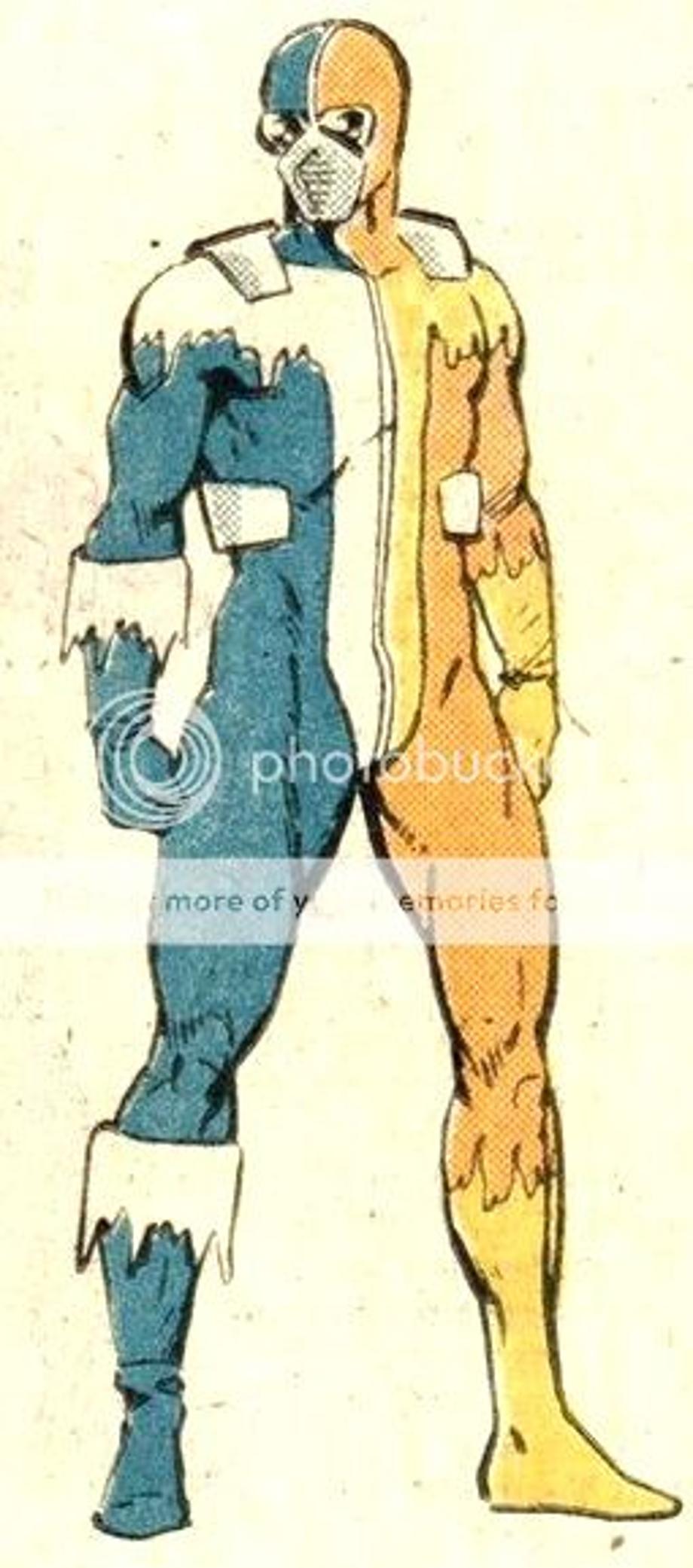 A pyro-and-cryo-kinetic, Thermite was another Redeemer sent undercover into the Squadron Supreme. During his brief time with the Squadron, Thermite reveals a penchant for being a trickster as he plays multiple practical jokes on his teammates including interrupting a romantic moment in a hot tub between Haywire and Inertia by freezing the water solid. In the Squadron Supreme's final, violent battle with the Redeemers, Thermite is seemingly killed by mistake by Haywire as Haywire uses his powers to trip up the Whizzer who, moving too fast to stop, kicks Thermite's equipment that's mounted on his back with such force that it explodes, freezing Thermite in a giant block of ice.