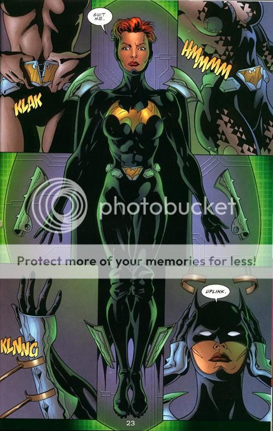 "Barbara Gordon was the daughter of James Gordon and Barbara Eileen Gordon, and on one fateful night upon returning from a movie, making a shortcut through an alley, they were met by the mugger Joe Chill, who intended to kill the young Bruce Wayne and his parents; in the confusion, her parents were killed before her, causing Barbara to pick up her father's gun and arrest Chill. Taking pity on the now-orphaned Barbara, she was taken in by the Wayne Family, close friends of the Gordons who saw to it that she was given the best. Barbara now wears the cape and cowl of Batgirl and rules Gotham with tyrannical furor, using both might and technology, having created the Oracle Supercomputer to aid her. Her secret identity and vigilante antics are known to her billionaire benefactor and confidant Bruce Wayne, while her day job is as a crime fiction writer whose books are based on her own cases."