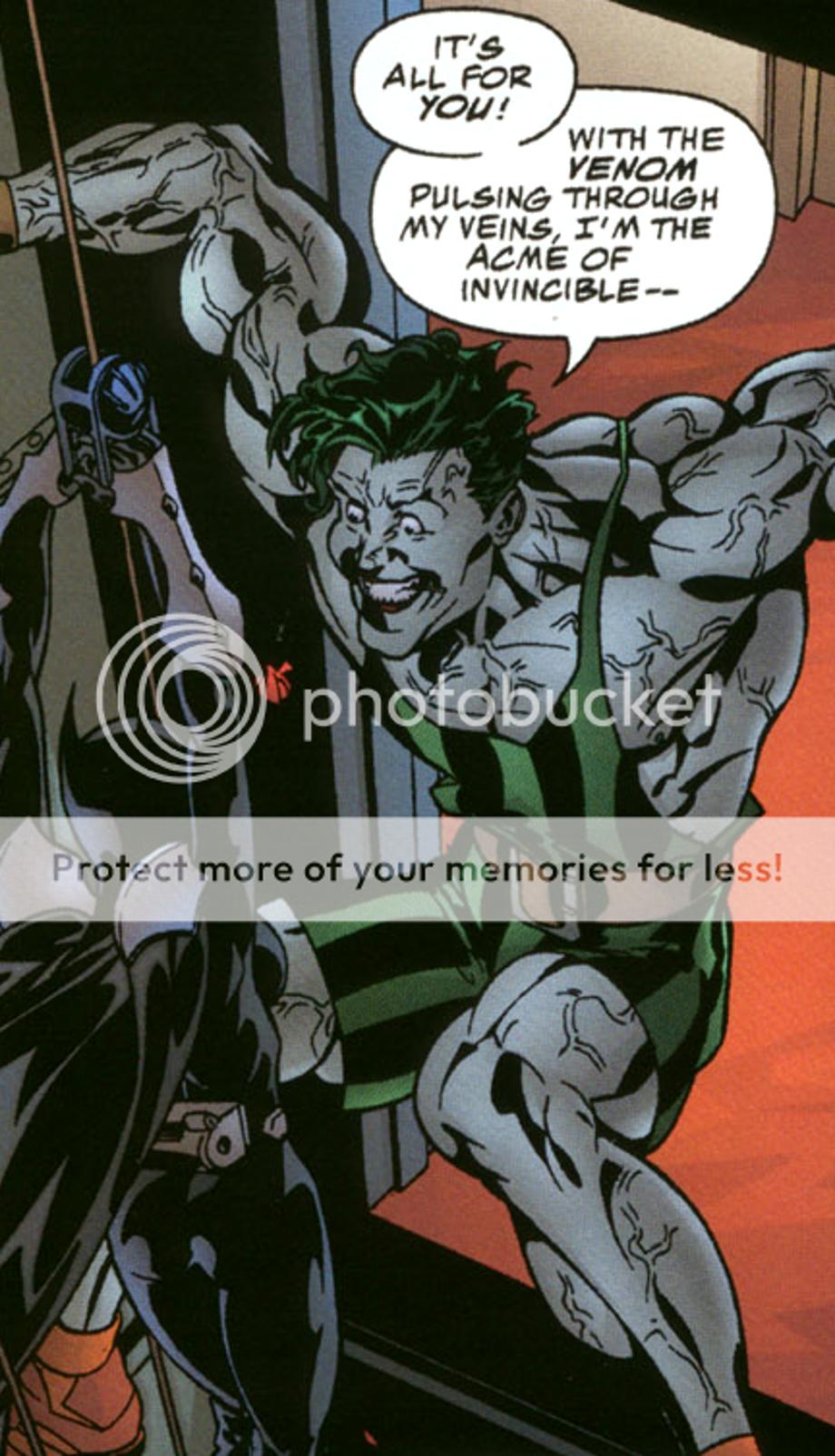 "The Joker is obsessed with Batgirl and desperately tries to win both her attention and love. Has the strength, physique, and costume of a circus strongman, thanks to shots of the Venom steroid."
