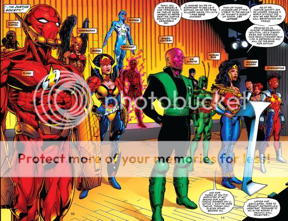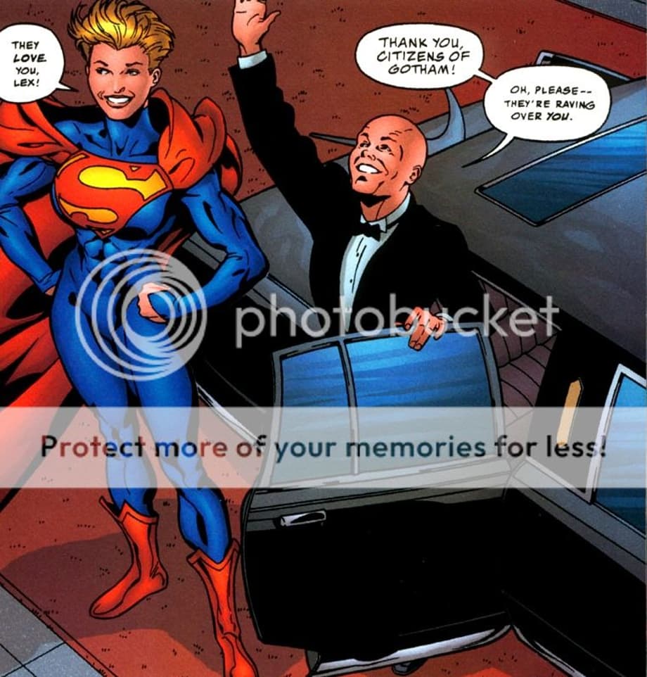 "Alexander Luthor was a popular, wealthy businessman who amassed a vast fortune thanks to his genius, business acumen and considerably shadier methods such like hiring a hitman to assassinate the Wayne Family, or murdering an alien baby in order to research his physiology. In order to hide his criminal activities he passed himself as a philantropist an even became Justice Society of America's main backer and ally. When Kara Zor-El made it to Earth, Luthor imediately positioned himself like her friend and mentor, planning to get rid of her once her usefulness came to an end."
