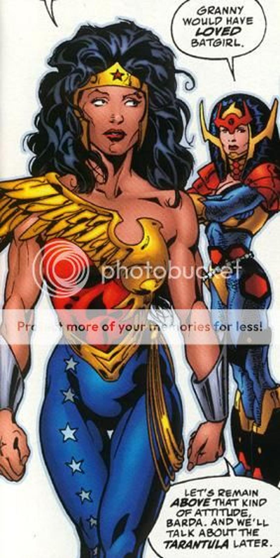 "Leader of the Justice Society and princess of the Amazons, Wonder Woman acted as a mother figure to Supergirl during her early years on Earth. Before Supergirl's arrival on Earth, due to Batgirl's actions and that of the monitoring "Oracle Eye", Gotham has been completely sealed off from normal society. An embargo is in place forbidding any Metahumans from entering the city, unless Batgirl permits it. Wonder Woman disapproves of Batgirl's methods, and is put in a bind when Luthor is kidnapped moments after the team has left Gotham, per an agreement with Batgirl."