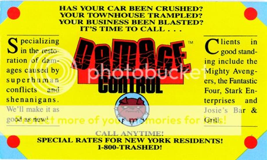 The basic skinny on Damage Control is that it's a construction, engineering, and insurance company usually contracted to fix the massive amounts of property damage caused by superhero/supervillain conflicts. Its employees have been face-to-face with a number of such characters, including getting Spider-Man out of a collapsed giant robot; dredging Avengers Mansion from the Atlantic Ocean; being nearly targeted by the Punisher due to the Kingpin being a secret shareholder of the company; and even saving the universe from being destroyed in the name of a 'big cosmic cleanup'.