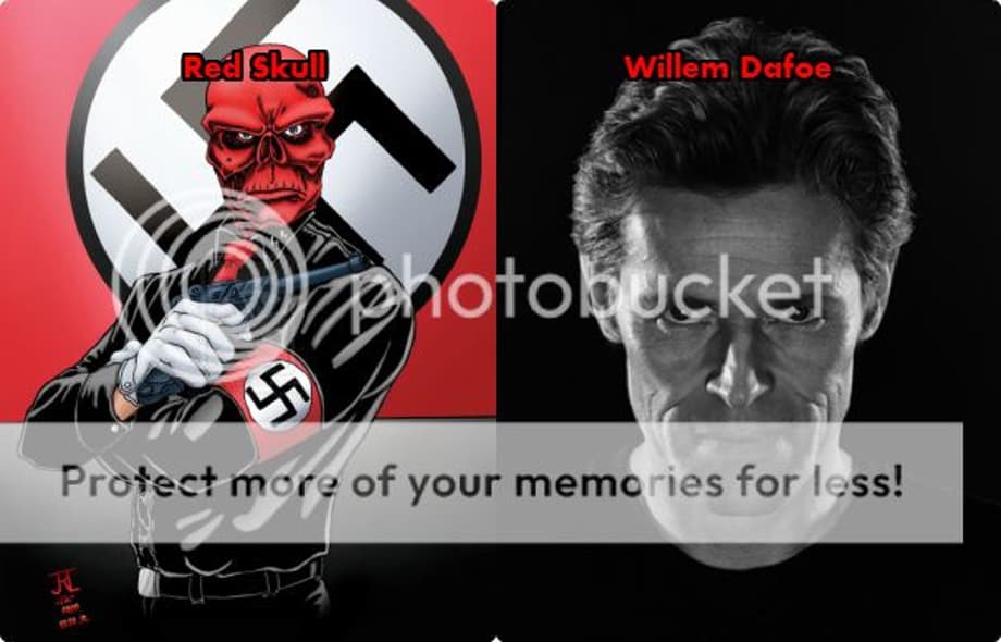 I think Dafoe could pull off the role of Red Skull way better than Hugo did. I can already hear his accent and see him as the pompous Nazi bastard he is. Willem just has that superior, creepy, manical look and attitude that would suit the character.