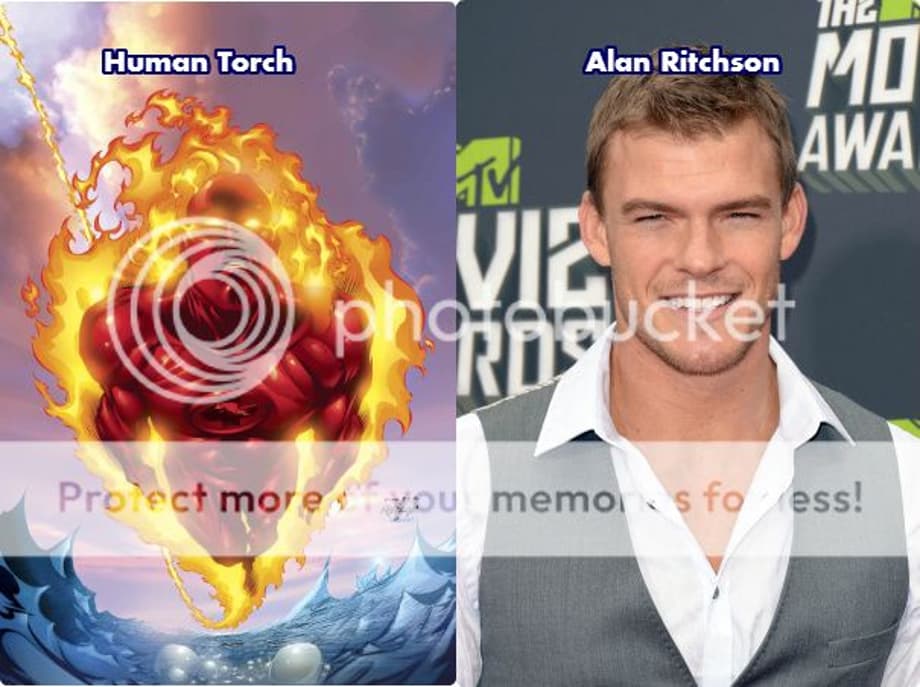 Alan would be a great Human Torch cause he is that cocky, smartass, jock, showboating character that Johnny is. If you haven't seen Alan in much, check him out in Blue Mountain State - His character in that show could work for Johnny if it was just adjusted in some areas.