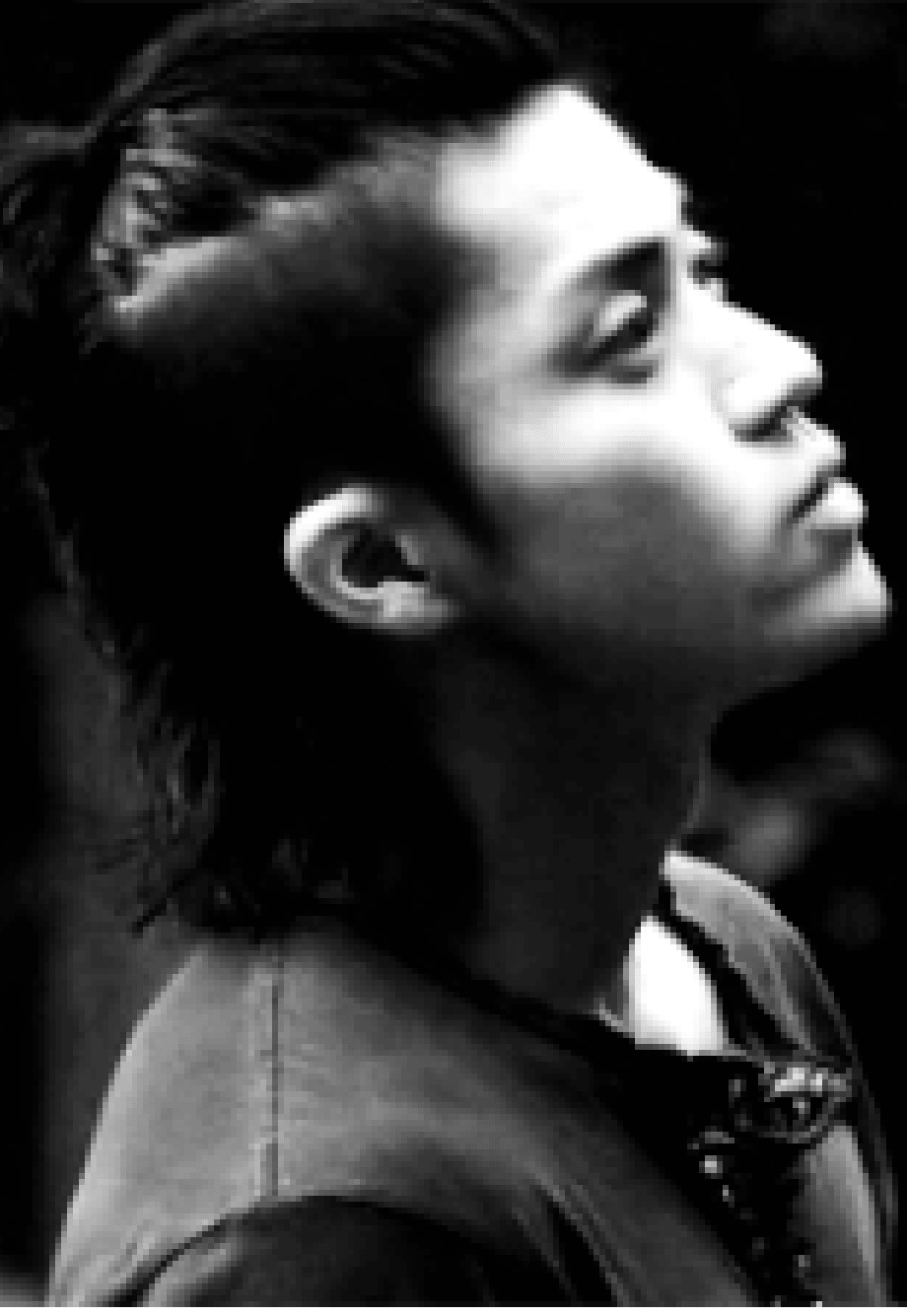Long, bathed in the darkness room.