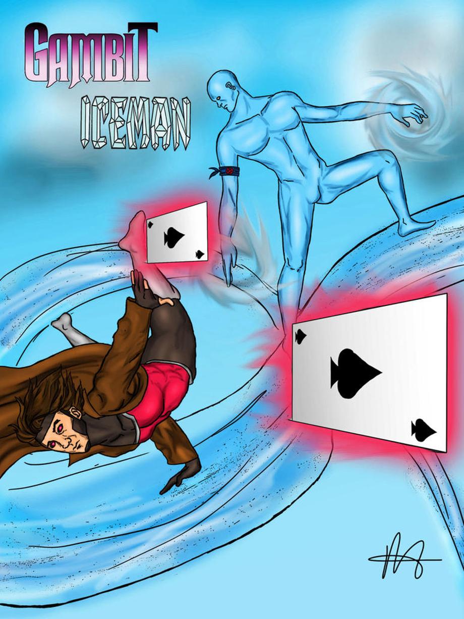 finally figured out how to post properly, here is the gambit iceman one i did, p.s. ice tracks and background are shitty, ill go back and fix them soon but i still wanted to post this anyway