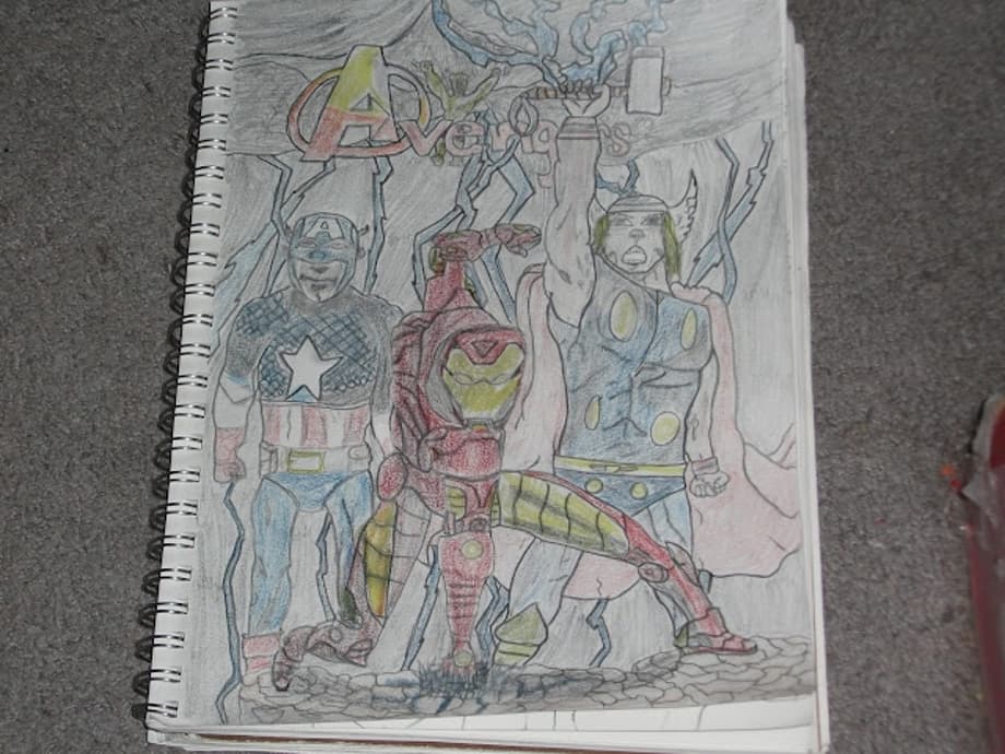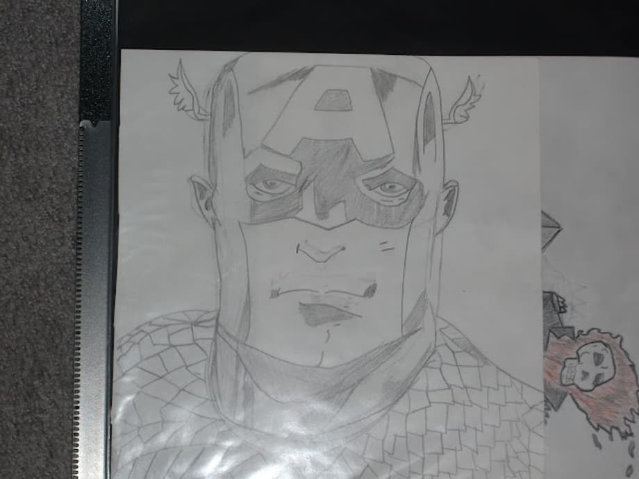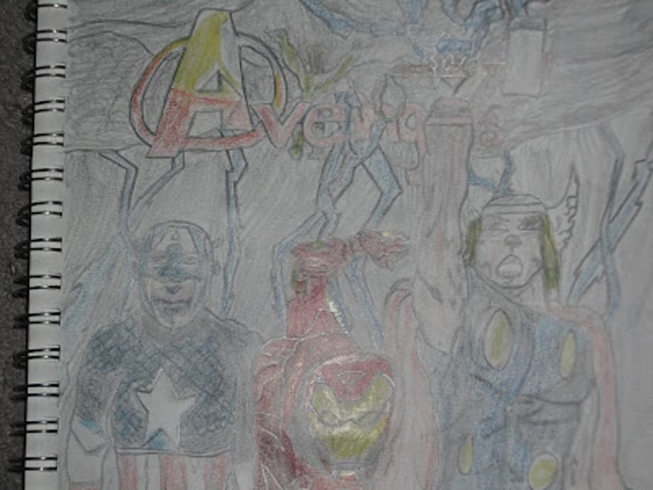 I recently posted my older pictures,(older pics here http://www.comicbookmovie.com/fansites/Marvelmoviesandtv/news/?a=22669 , and here http://www.comicbookmovie.com/fansites/ARMAGEDDON/news/?a=28284 ) but I have a few newer ones that I want to run past everybody to see what you guys think of them.I am still twelve,so please do not be to harsh on me.There is a new version of an older Avenger picture I drew,just a face I was working on to test a new style,same as the Captain America picture,and my designs for a new character of my own that I am developing.