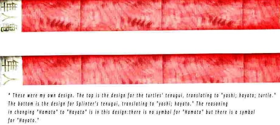 Raphael then notices a tenugui that’s been pinned to the wall with a shuriken; it is a mark of the Foot Clan.