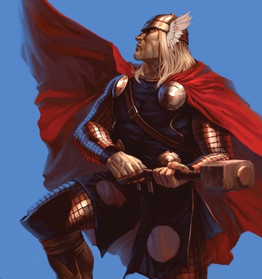 “Do not RUN BROTHER!” Thor yelled as he pounced to engage Loki but as he leapt the Fire Giant caught him with his mace and knocked his helmet off…and his hammer to the floor…and began beating Thor with no mercy…such was the Fire Creature’s rage that when he failed to lift Mjolnir…he rammed his frustration into Thor’s skull…
