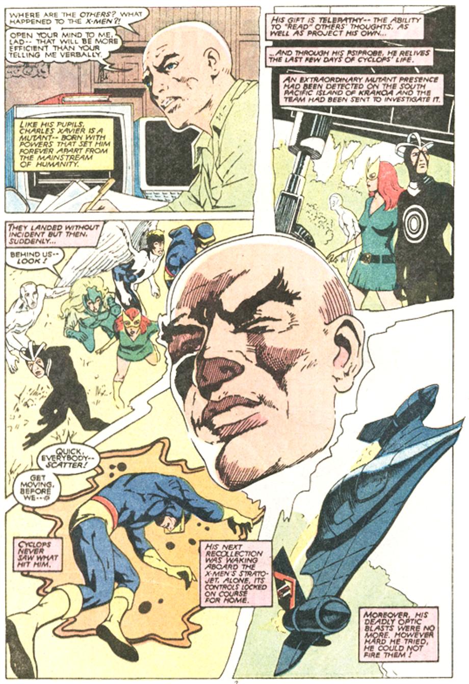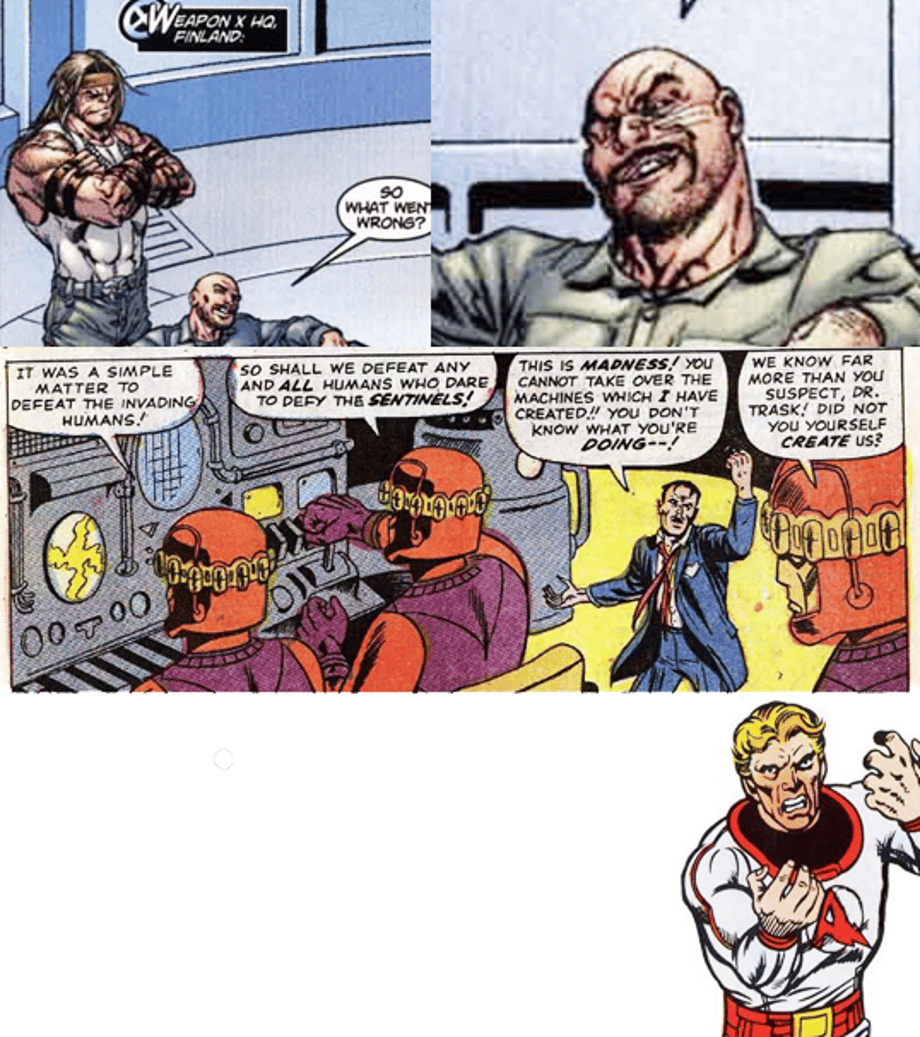 The evil triad (Trask,Lang,Wraith) set up a trap for the x-men, as they radiated a huge field of energy planted in island, Pacific island Krakoa, that triggered Xavier power so sent his x-men to explore this energy coming from the island, as soon as, The x-men arrived, It was a set up, a group of sentinels was launched to attack, a group of weapon x agents, a mutants brainwashed agent works for the department, some of them willingly, Sabretooth and native American mutants John Proudstar and the Morlocks leader Callisto, together they took down alongside the sentinels the x-men, the only survivor was Scott summers aka Cyclops, the traumatize Cyclops soon travelled back to the institute to inform Professor Xavier , Charles quickly examined the mind of his student, he came to conclusion that it was the work of weapon x and Bolivar Trask and his follower of anti-mutant , as consequence, Charles had to take an action and to save his own students for weapon x captive and his refusal to let the same thing happen to them as it did to him.