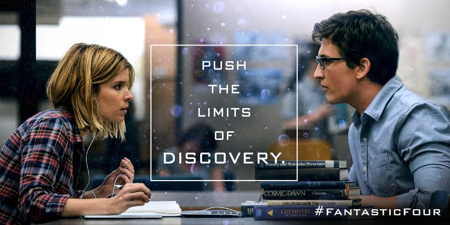 The official Fantastic Four Twitter account has released a new still from the Josh Trank directed reboot, giving us another look at Kate Mara as Sue Storm/Invisible Woman, and Miles Teller as Reed Richards/Mr. Fantastic as they attempt to "push the limits of discovery" together. Check it out...