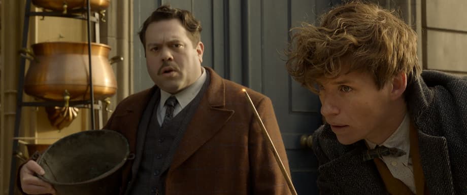 (L-r) DAN FOGLER as Jacob Kowalski and EDDIE REDMAYNE as Newt Scamander in Warner Bros. Pictures' fantasy adventure "FANTASTIC BEASTS: THE CRIMES OF GRINDELWALD,” a Warner Bros. Pictures release.