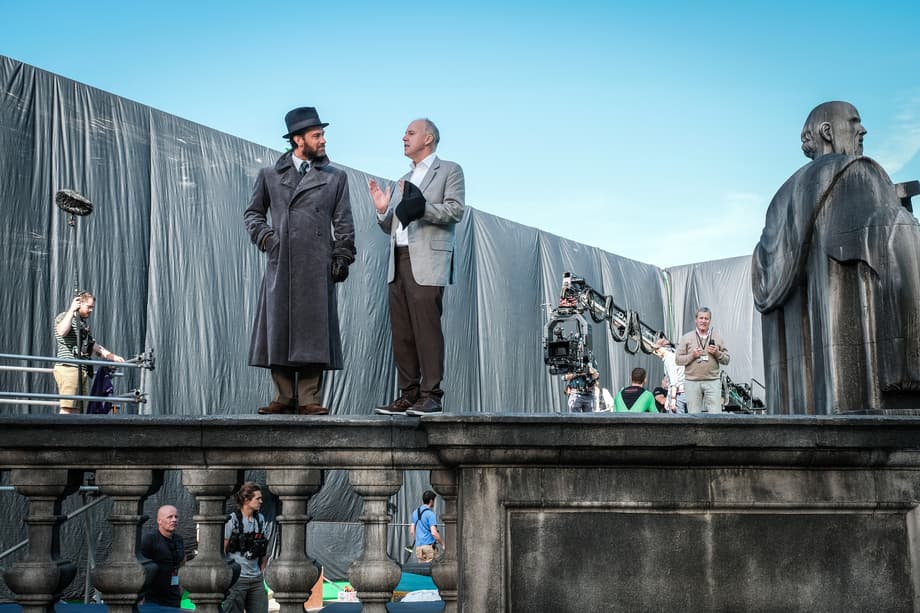 (L-R) JUDE LAW and director DAVID YATES behind the scenes on Warner Bros. Pictures' fantasy adventure "FANTASTIC BEASTS: THE CRIMES OF GRINDELWALD," a Warner Bros. Pictures release.