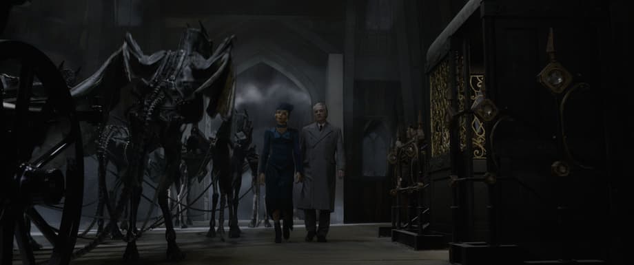 (L-R) A beast called a Thestral, CARMEN EJOGO as Seraphina Picquery and WOLF ROTH as Spielman in Warner Bros. Pictures' fantasy adventure "FANTASTIC BEASTS: THE CRIMES OF GRINDELWALD,” a Warner Bros. Pictures release.