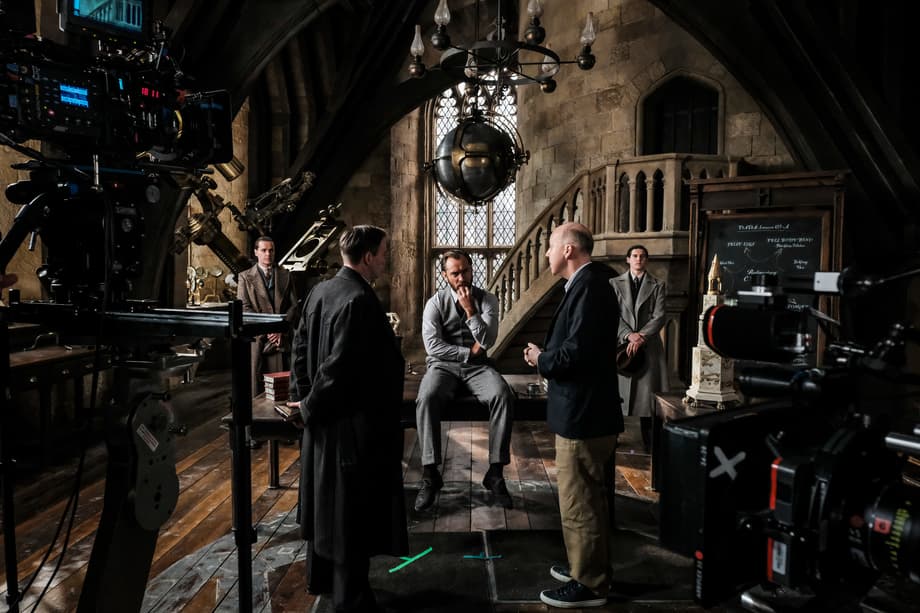 (Center L-R) JUDE LAW and director DAVID YATES behind the scenes on Warner Bros. Pictures' fantasy adventure "FANTASTIC BEASTS: THE CRIMES OF GRINDELWALD," a Warner Bros. Pictures release.