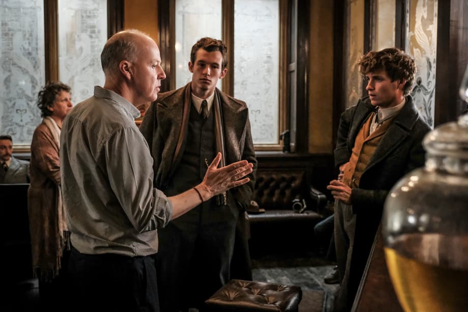 (L-R) Director DAVID YATES, CALLUM TURNER and EDDIE REDMAYNE behind the scenes on Warner Bros. Pictures' fantasy adventure "FANTASTIC BEASTS: THE CRIMES OF GRINDELWALD,” a Warner Bros. Pictures release.