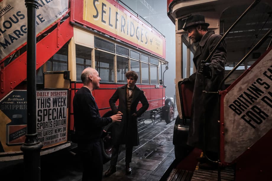 (L-R) Director DAVID YATES, EDDIE REDMAYNE and JUDE LAW behind the scenes on Warner Bros. Pictures' fantasy adventure "FANTASTIC BEASTS: THE CRIMES OF GRINDELWALD," a Warner Bros. Pictures release.