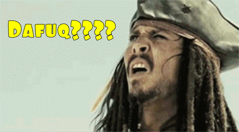 Captain Jack Sparrow (Johnny Depp) aboard a pathetically small ship, The Dying Gull.