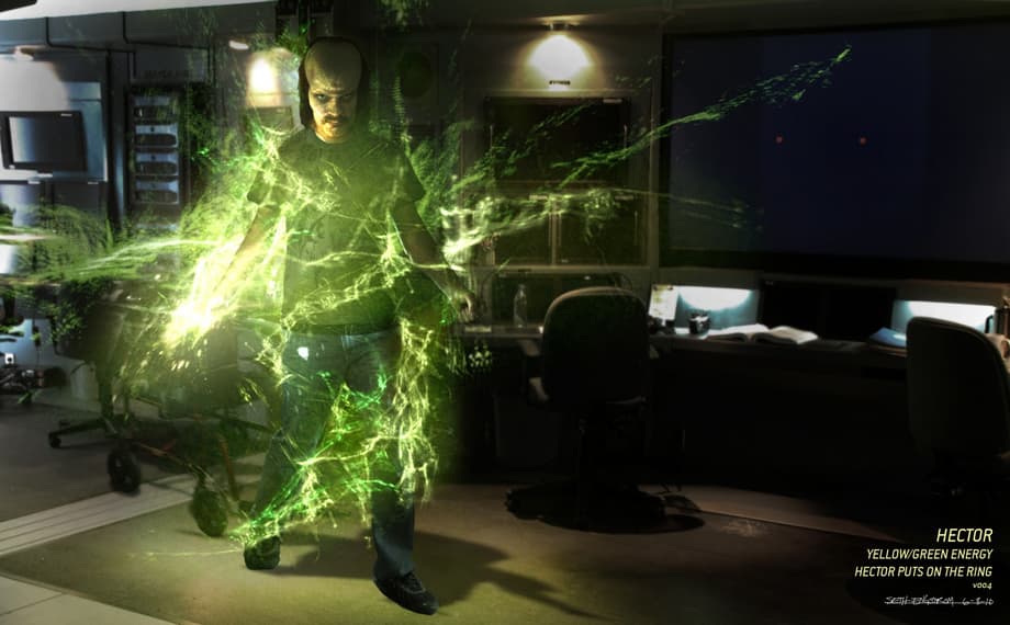 In brightest day, in blackest night: no Green Lantern concept art shall escape my sight. Come see art that Seth Engstrom created, including designs for: Parallax and Hal Jordan's constructs and ring blasts. Also, behind the scenes photos of the makeup effects.