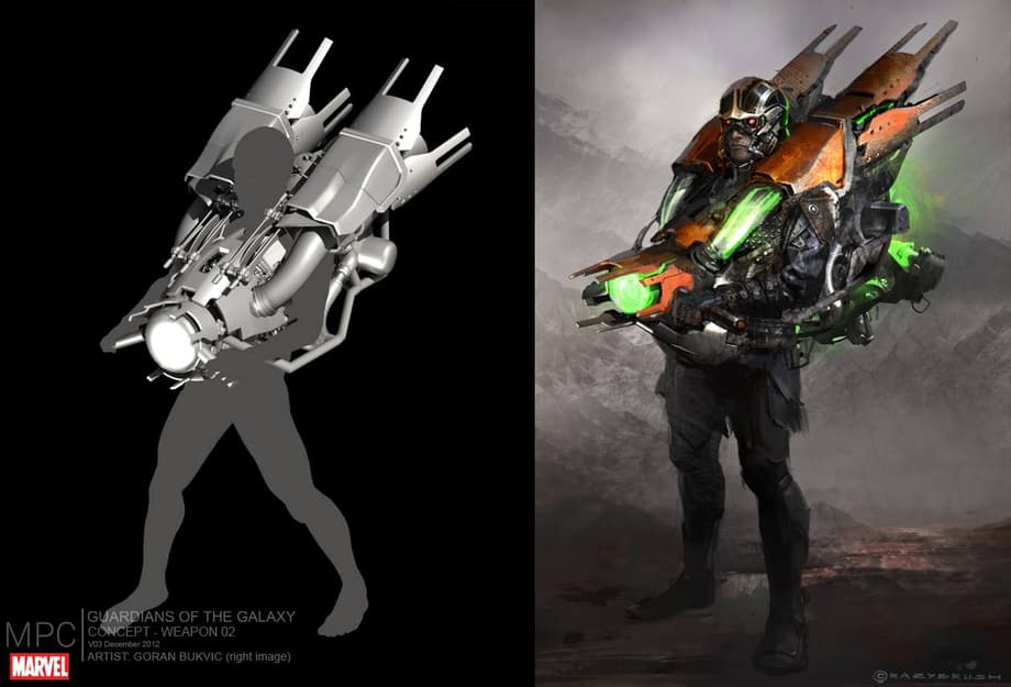 Hit the jump and check out the another batch of conceptual artwork by artist Goran Bukvic, now with weapons in Guardians of the Galaxy as well as the Badoon and a planet that didn't appear in the movie.