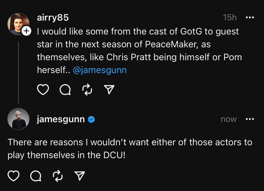A fan asked Gunn if there was any chance we might see the likes of Chris Pratt (Star-Lord) and Pom Klementieff (Mantis) playing themselves in the second season of Peacemaker, and gave a very interesting response.