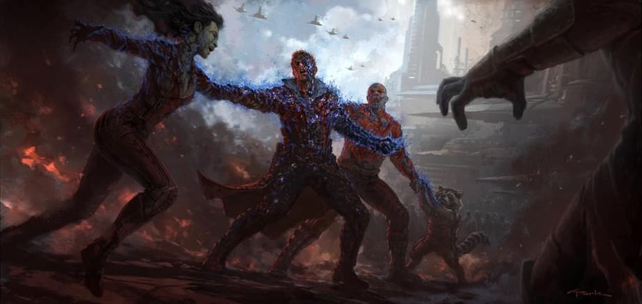 Marvel's conceptual artist extraordinaire, Andy Park ("Thor: The Dark World"), has posted some more of his concept art for Guardians of the Galaxy. Come see designs for 'Gamora,' 'Rocket' and key frame art from the climactic battle.